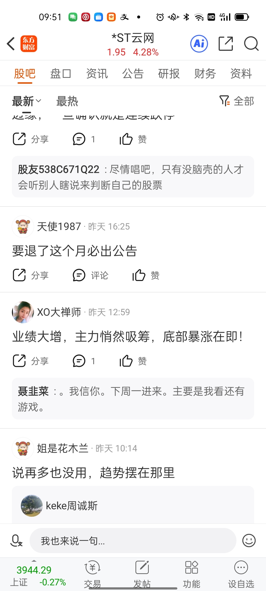 $*ST云网(SZ002306)$ 拿好,早着呢