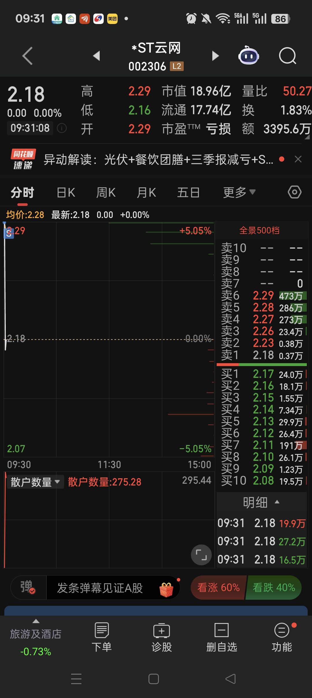 $*ST云网(SZ002306)$ 我砸了3千手