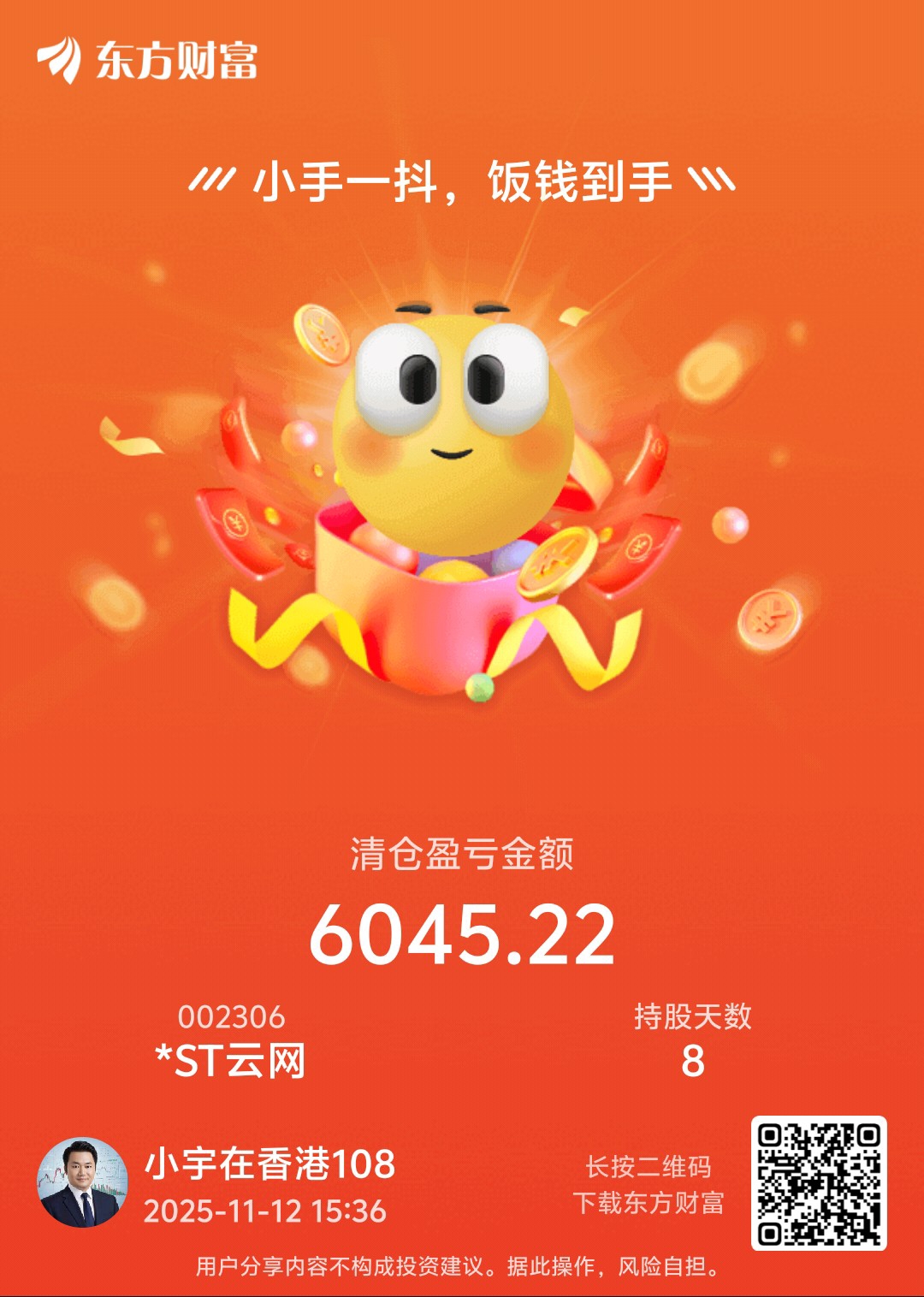 郑重声明:用户在财富号/股吧/博客等社区发表的所有信息(包括但不限于文字、视频、音频、数据及图表)仅代表个人观点,与本网站立场无关,不对您构成任何投资建议,据此操作风险自担。请勿相信代客理财、免费荐股和炒股培训等宣传内容,远离非法证券活动。请勿添加发言用户的手机号码、公众号、微博、微信及QQ等信息,谨防上当受骗!