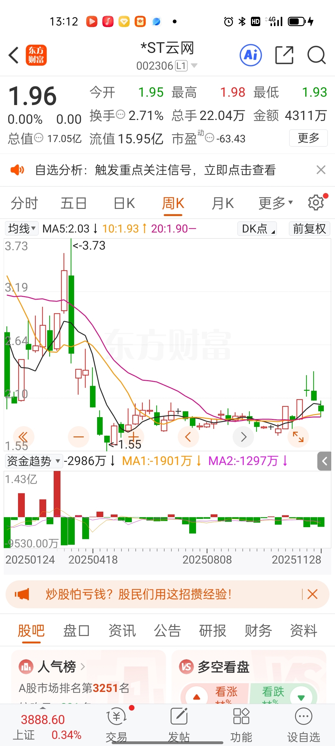 $*ST云网(SZ002306)$ 3倍以上大牛,主力早己埋伏好,步步为营拉升