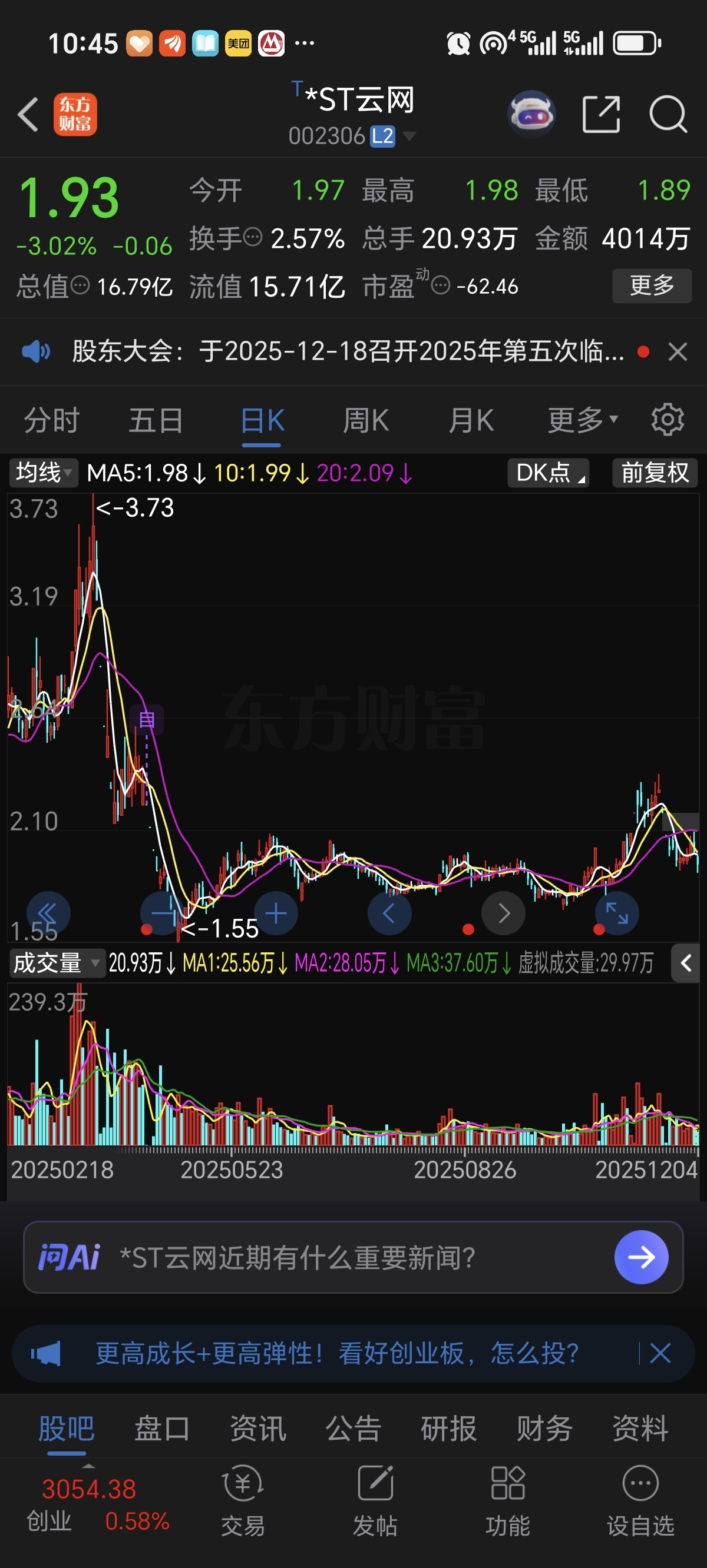$*ST云网(SZ002306)$ 今年还没涨,豁免冲击三元!!!!!!!