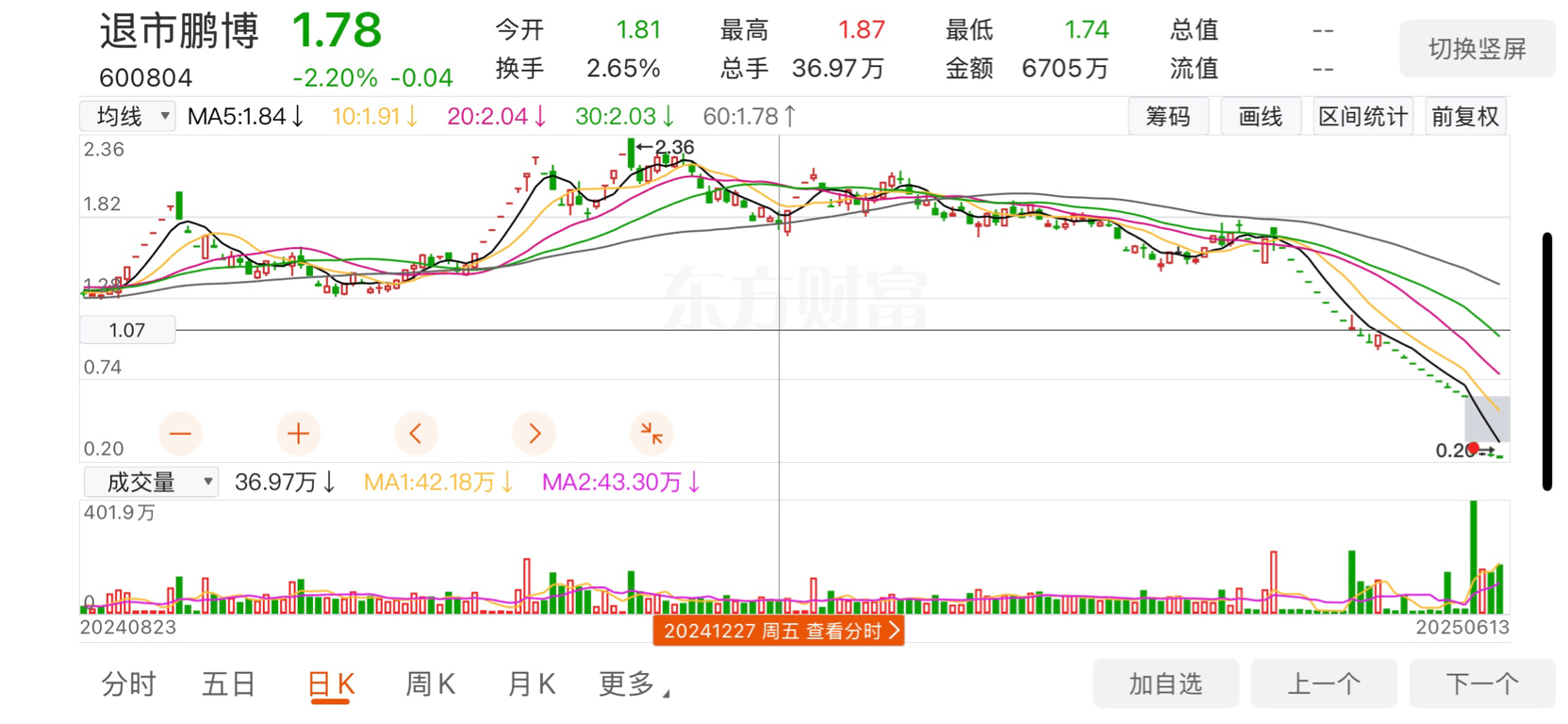 跟鹏博士的走势一模一样,鹏博士退市前里面的股民也是各种意