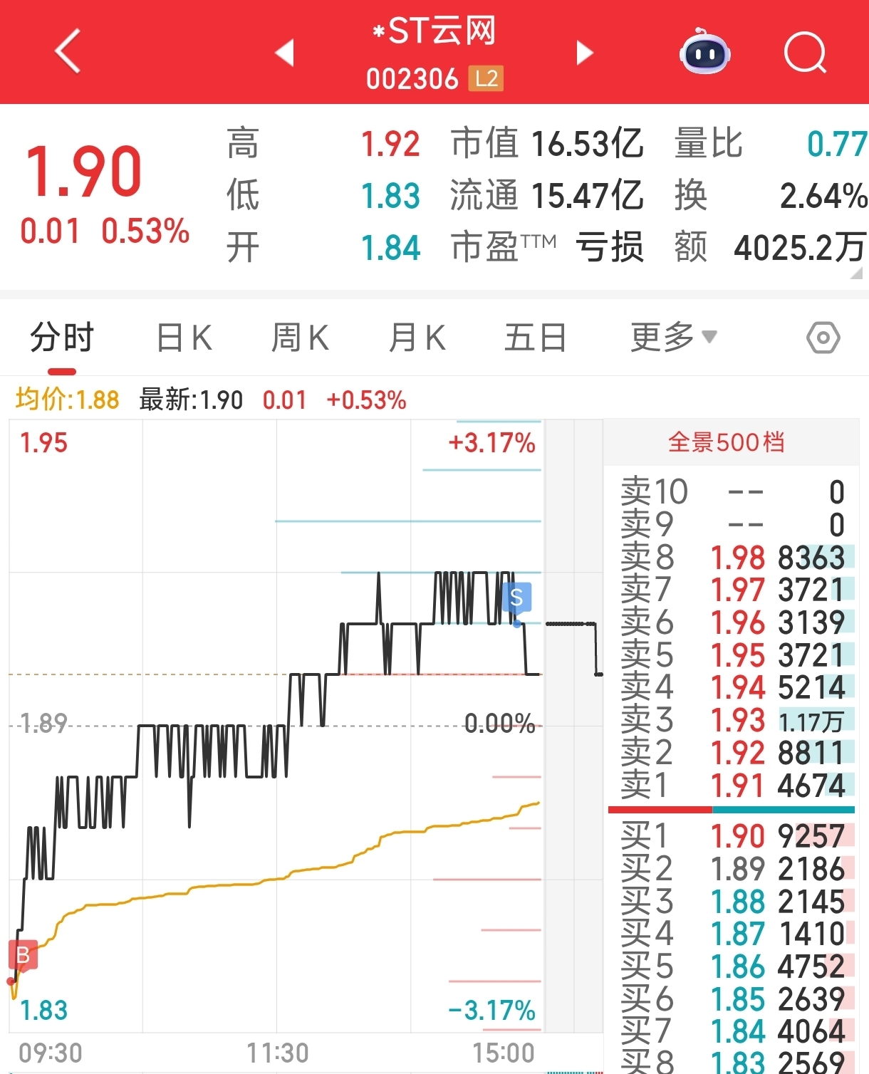 $*ST云网(SZ002306)$ 1.93卖不到,只能卖1.91了,昨天拿了先手,今天T了4%点多,星期一能不能继续低开继续T。