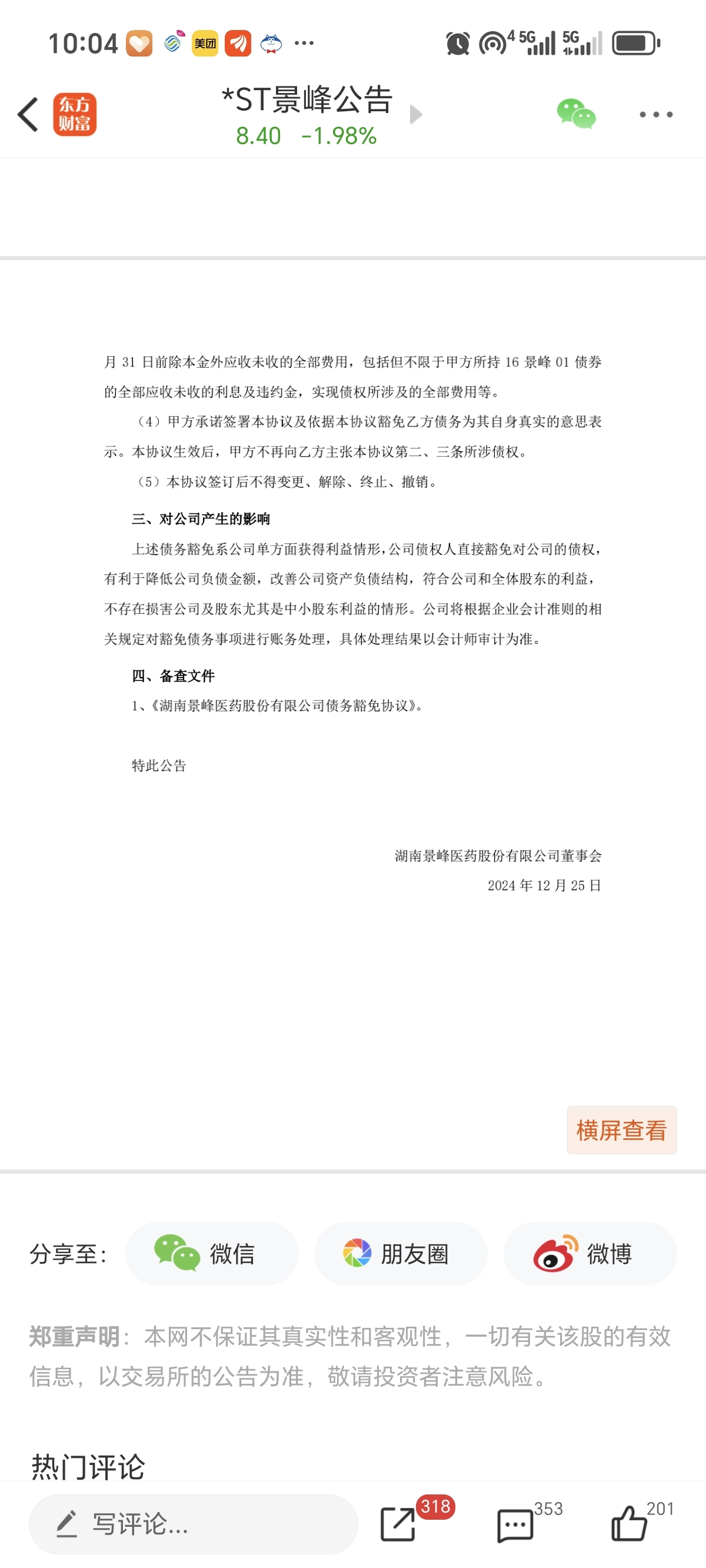 $*ST云网(SZ002306)$ 景峰去年,12.25号豁免