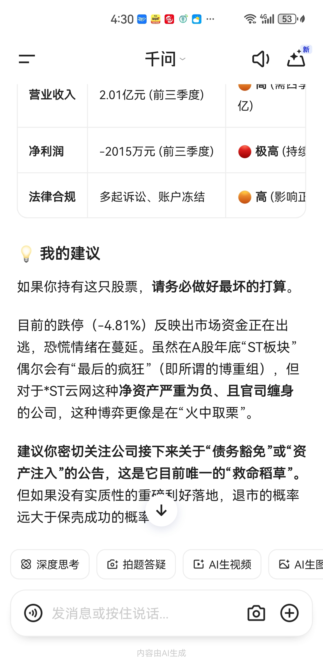 $*ST云网(SZ002306)$ 退市概率远大于保壳