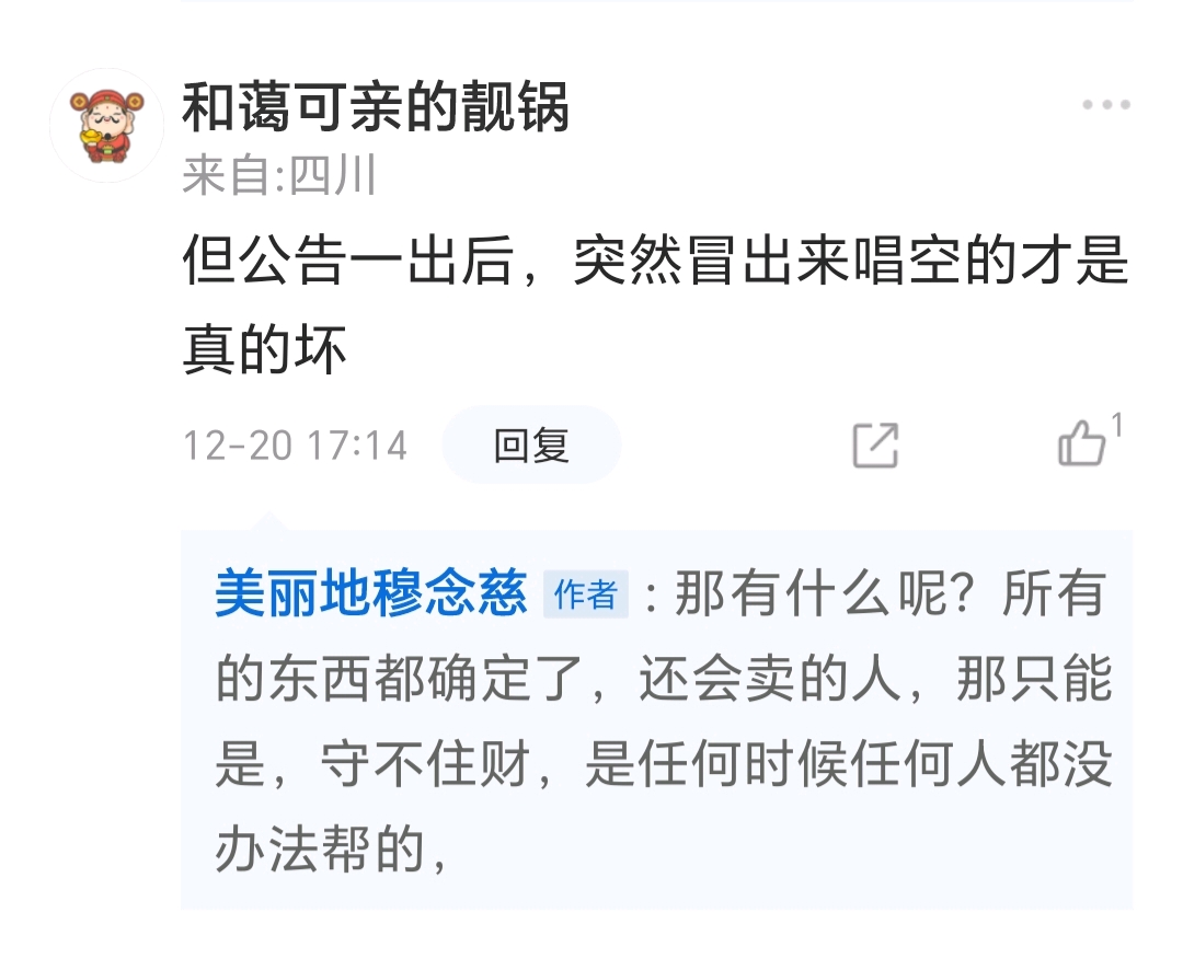 温馨提示: 1.根据《证券法》规定,禁止编造、传播虚假信息或者误导性信息,扰乱证券市场;2.用户在本社区发表的所有资料、言论等仅代表个人观点,与本网站立场无关,不对您构成任何投资建议。用户应基于自己的独立判断,自行决定证券投资并承担相应风险。《东方财富社区管理规定》