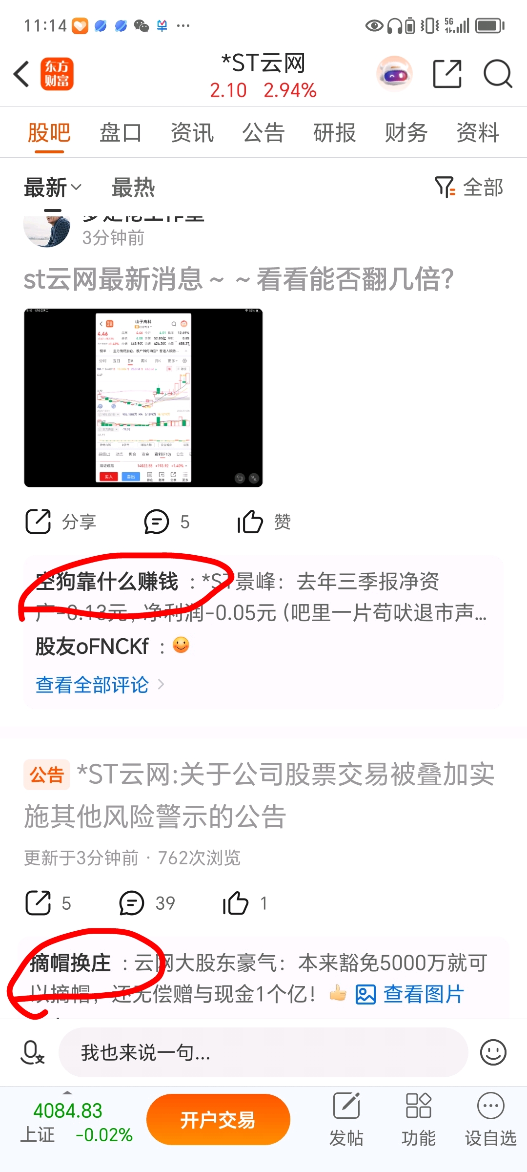 $*ST云网(SZ002306)$