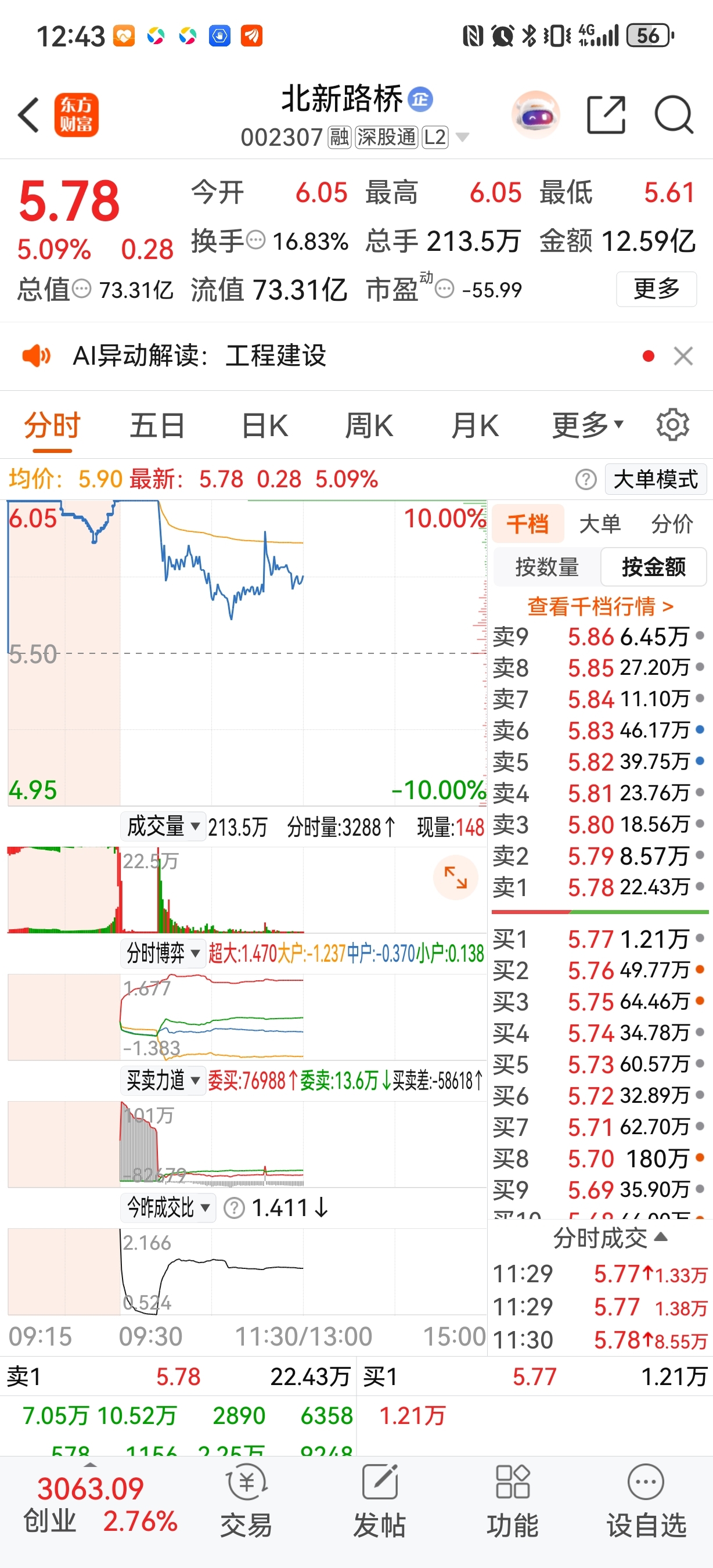 $北新路桥(SZ002307)$ 昨日断板,今日2亿资金早盘竞价弱转强封住涨停,看着十分坚挺,但开盘后不久开板,午盘收5个多点。经观察,大部分弱转强封住涨停的个股8成要开板,因没有经过充分换手,故封板率不高(除非利好)。