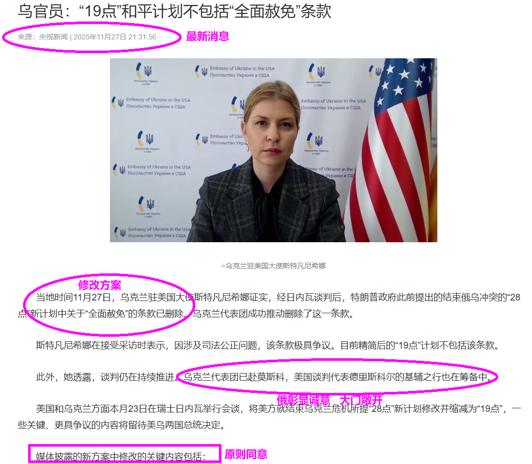 本大师最新解读:乌官员:“19点”和平计划不包括“全面赦免”条款