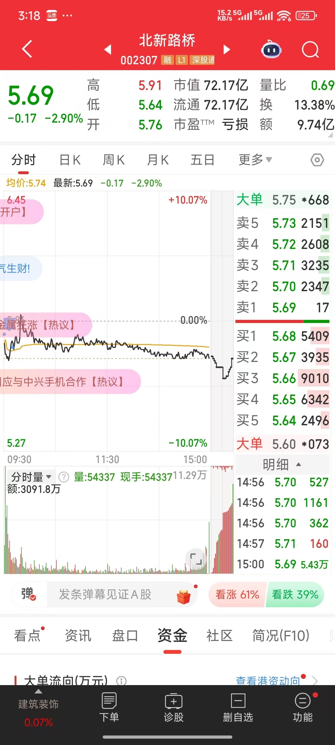$北新路桥(SZ002307)$ 开盘就清仓,厉害?