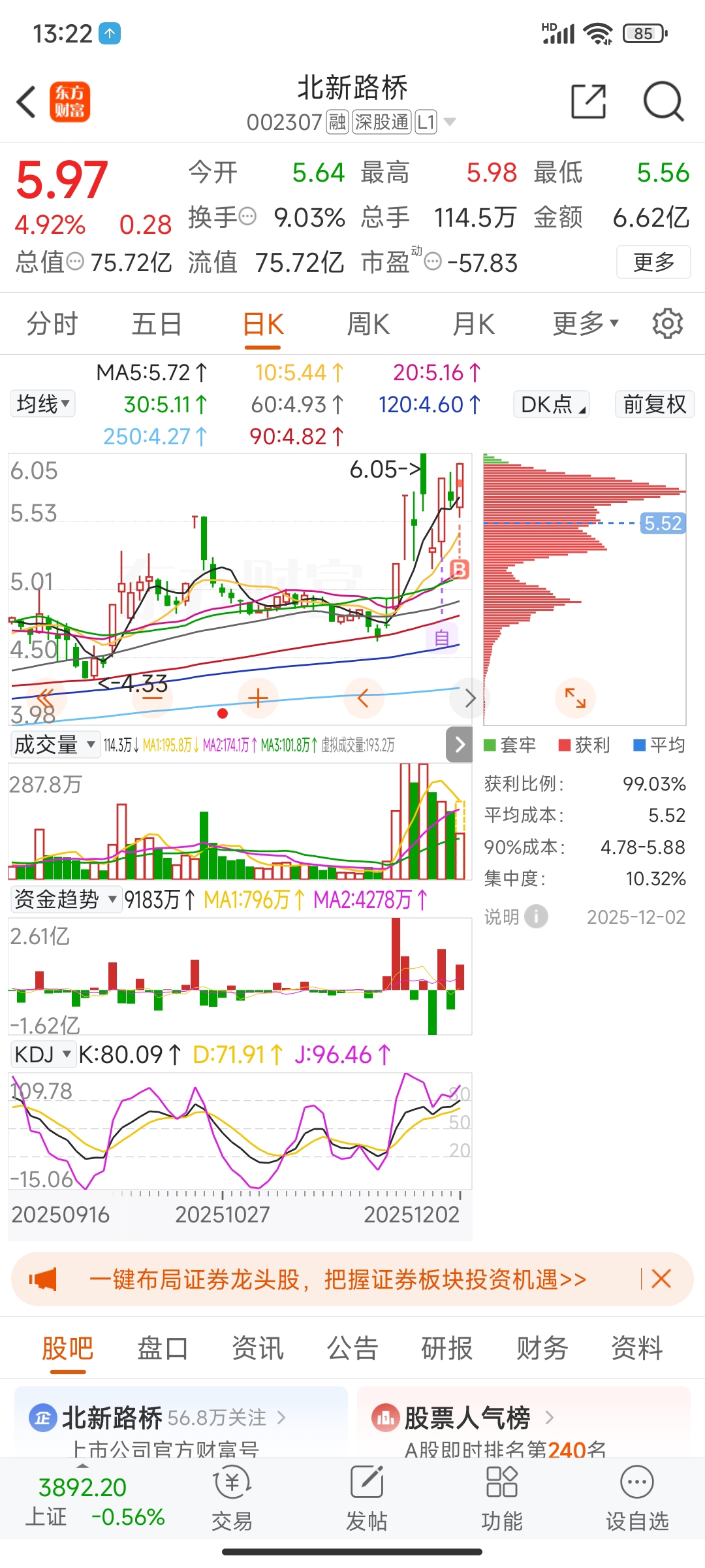 $北新路桥(SZ002307)$ 最少要摸6块以上,继续给我冲,主力给我拉板