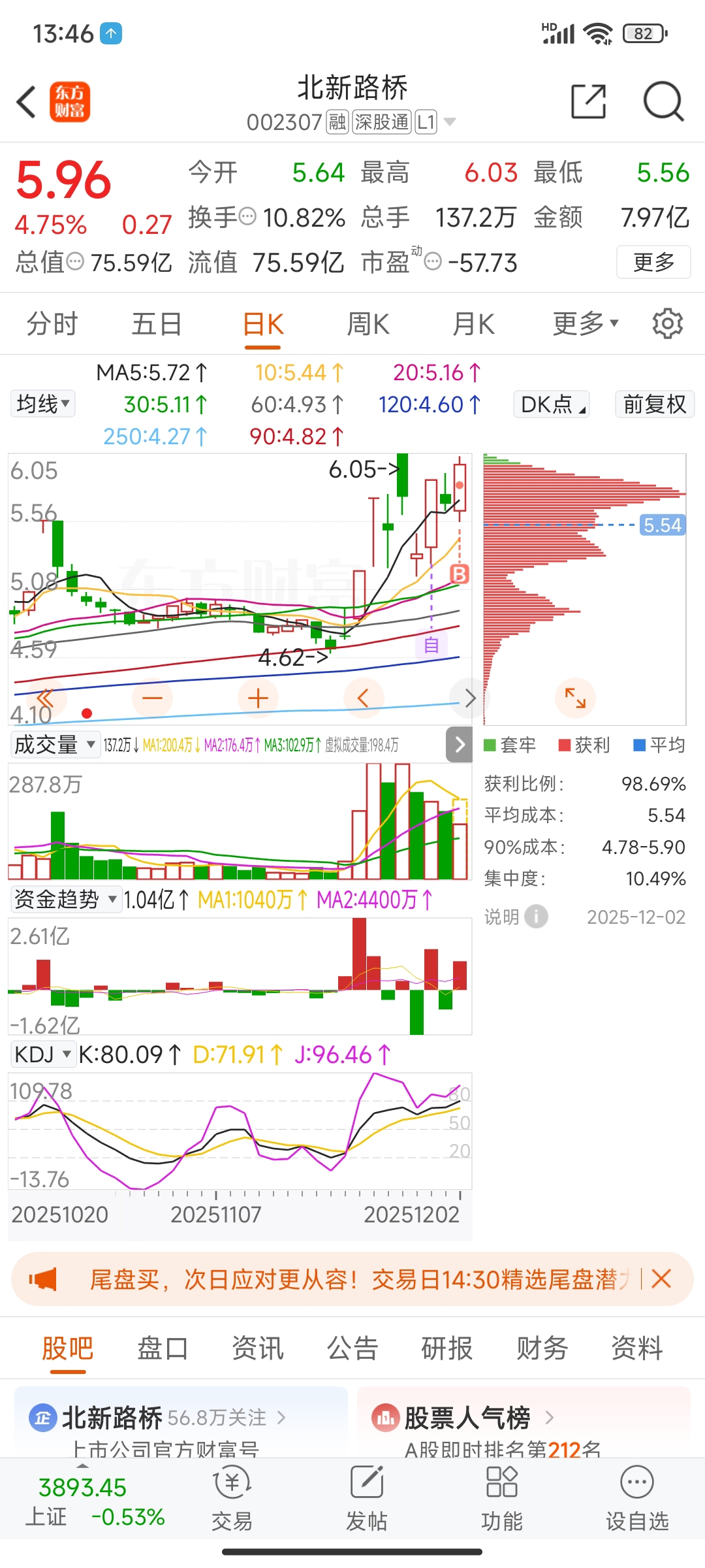 $北新路桥(SZ002307)$ 给我拿下6.05,冲