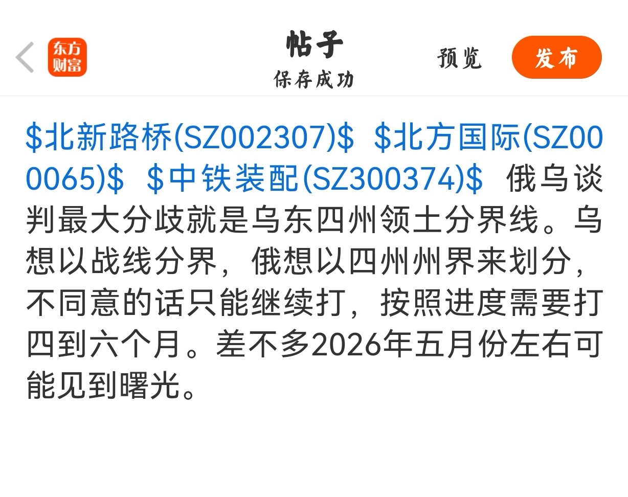 $北新路桥(SZ002307)$ $北方国际(SZ000065)$ $中铁装配(SZ300374)$ 变幻莫测,全靠消息面驱动。