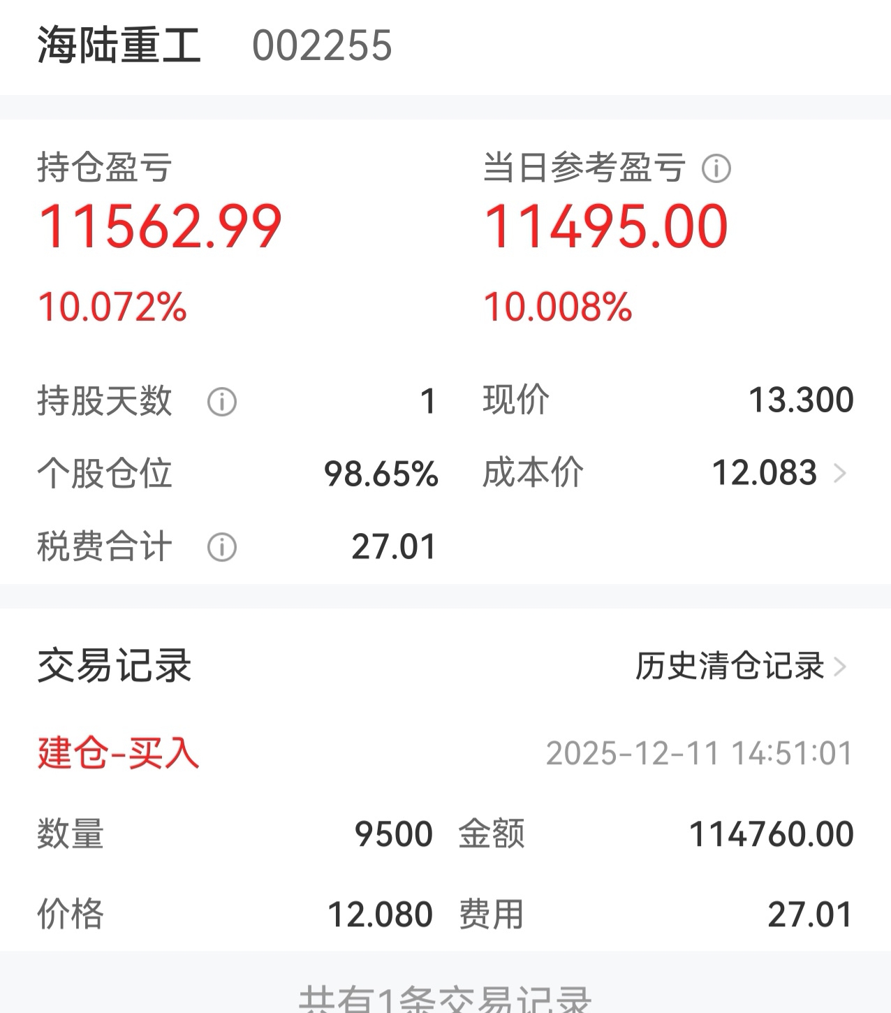 昨天做的最正确的选择:尾盘卖了北新路桥,换股海陆重工今天涨停。持股16天从盈利四