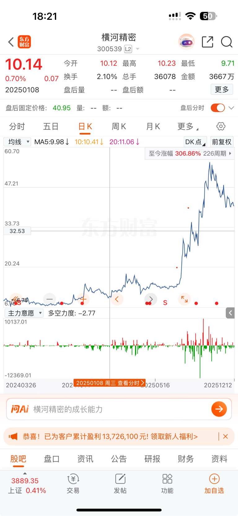 翻倍来了!本吧必看!自己去查一下横河精密。1月8号公告的增发一群人说大跌,抢跑,