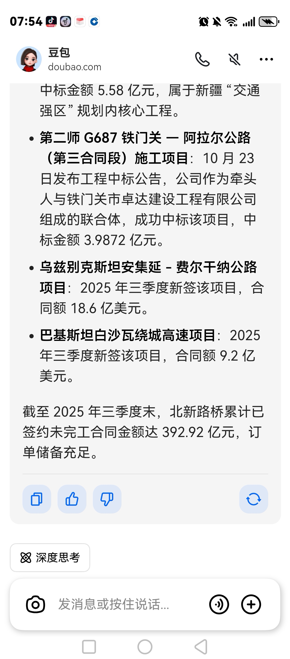 $北新路桥(SZ002307)$ 这个货在国外接了不少项目,三季度末累计中标金额392.92亿,俄乌和谈后,重建龙头无疑,慢慢等待吧,打仗打了四年,该和谈了。