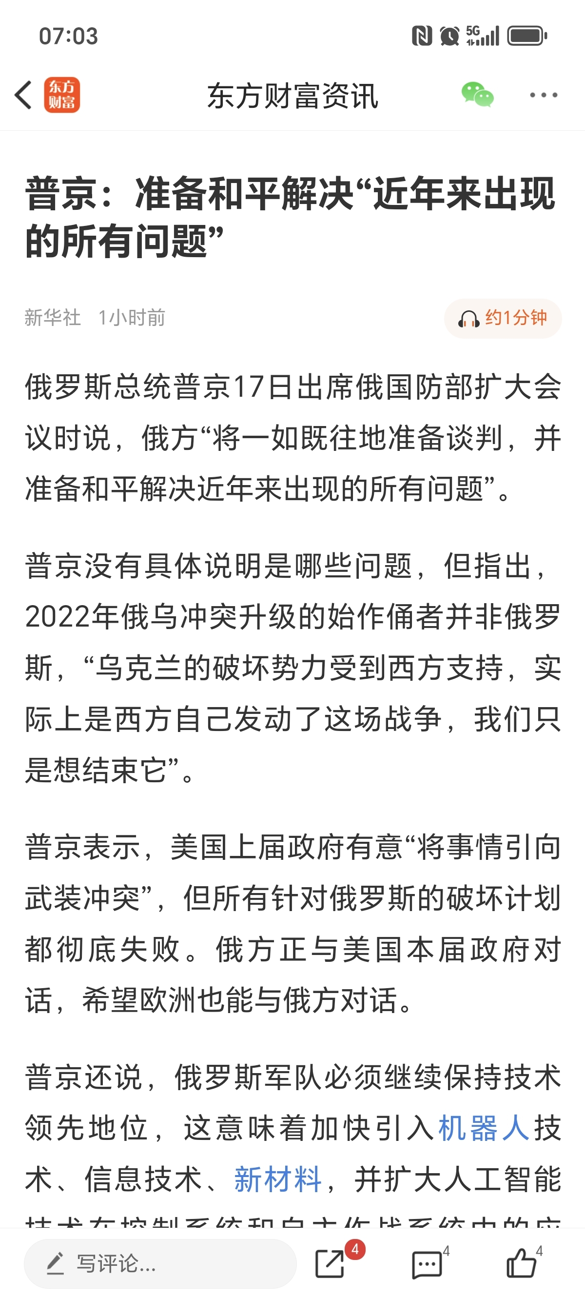 $北新路桥(SZ002307)$ 感觉周末会有实质性结果,俄也确认要和平解决。