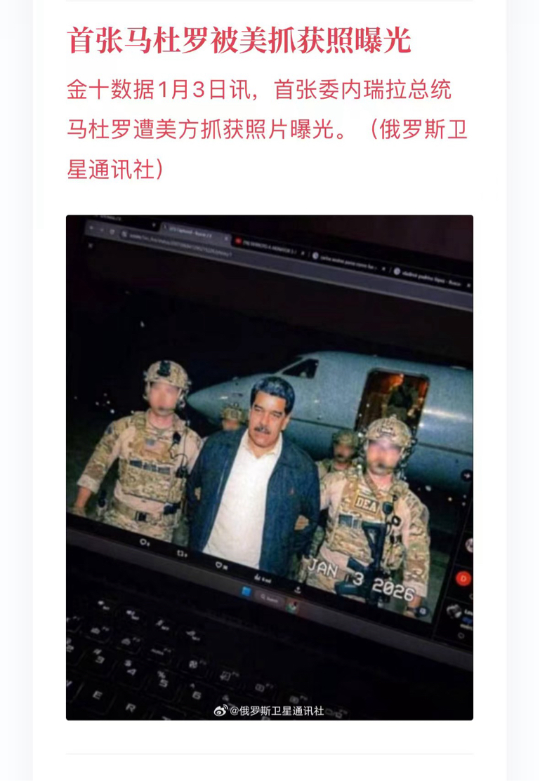 当地时间1月3日,美国总统特朗普称,美方已成功对委内瑞拉实施打击,抓获委内瑞拉总统马杜罗及其夫人,并带离委内瑞拉。