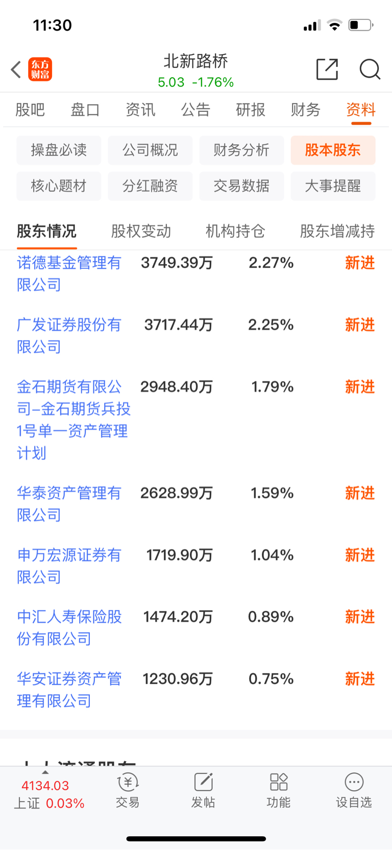 $北新路桥(SZ002307)$ 买入这个股票的朋友,和你们说一下,里头的这些机构买入股票价格是4.08大概在2月左右买进去的