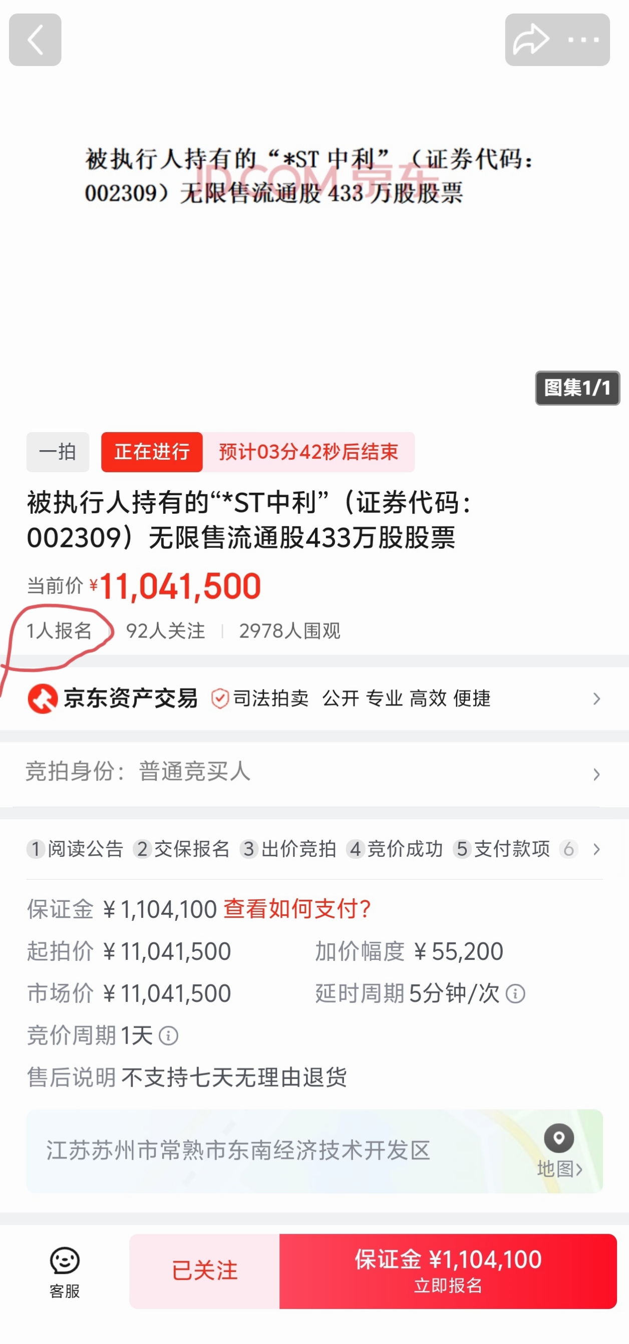 $中利集团(SZ002309)$ 今天的拍卖居然有人报名