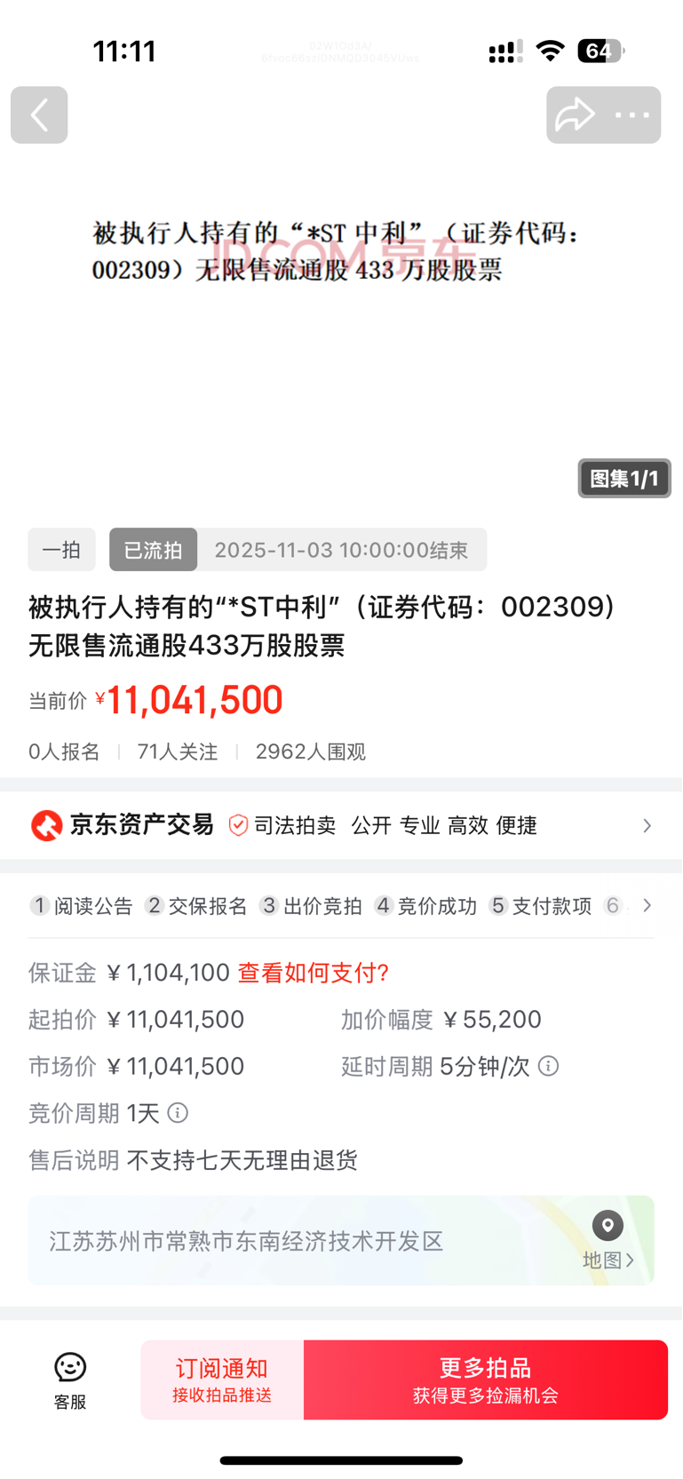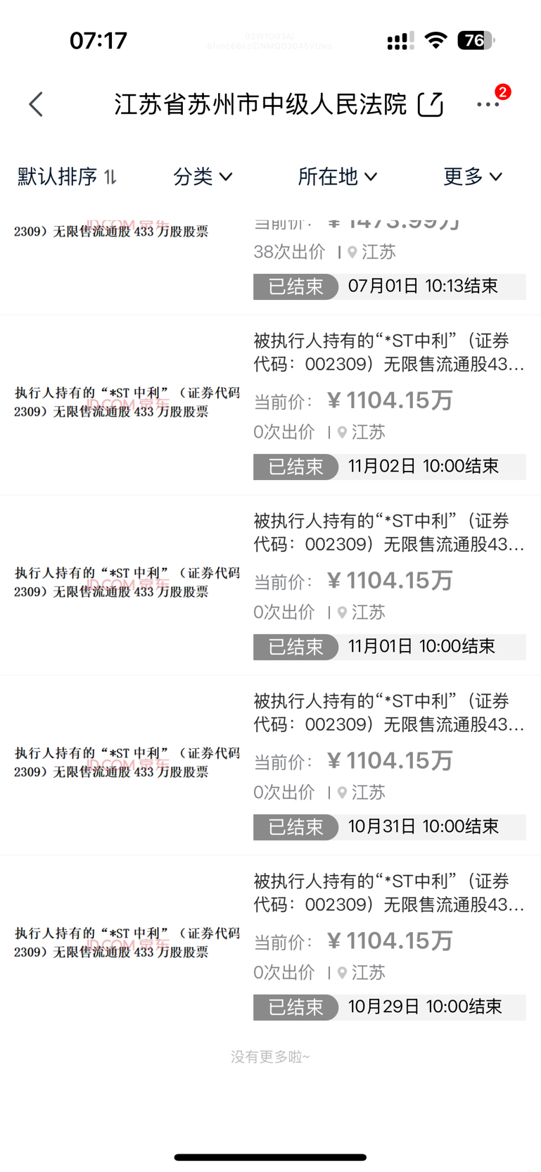 2.55的价格都没人要哦,流拍了四个标的。现在股价2.98,看样子2.55以后不