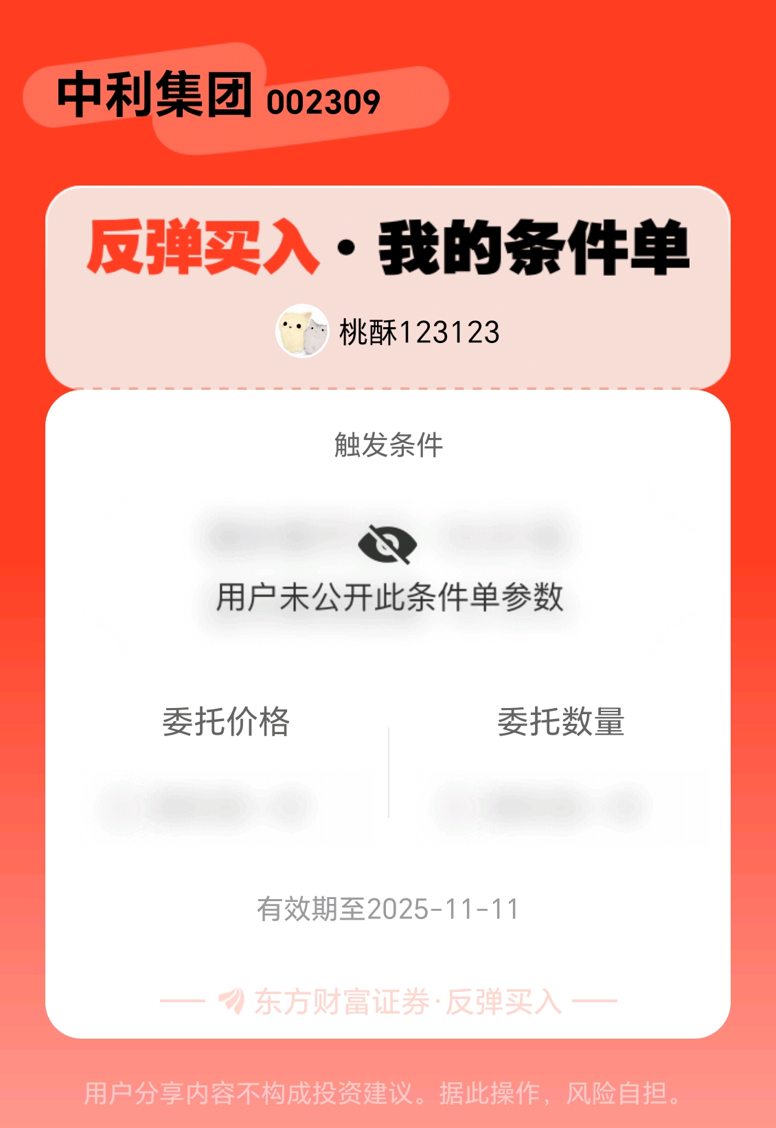 #条件单交流#  一位股神设置了一个反弹买入条件单,接下来就是见证奇迹的时刻~$中利集团(SZ002309)$