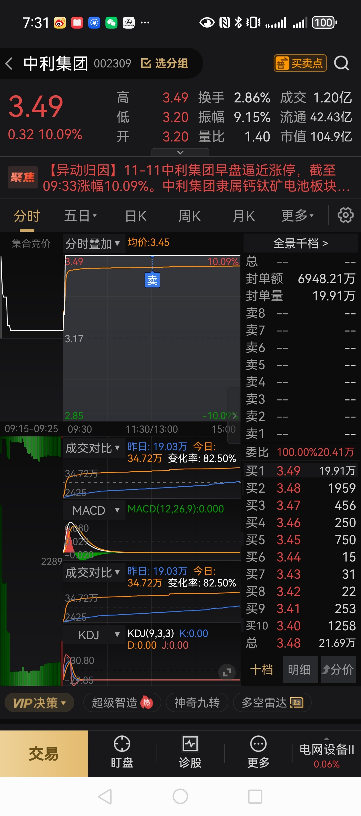 $中利集团(SZ002309)$ 留半仓,今天能不能3.6溢价,感觉还是要回踩3.2-3.3 ??