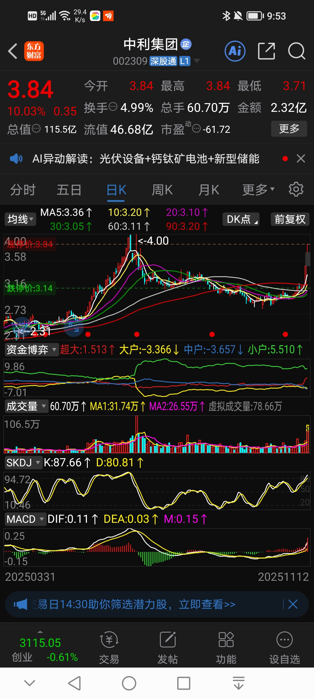 $中利集团(SZ002309)$ 中集集团:二连板涨停,低位涨停