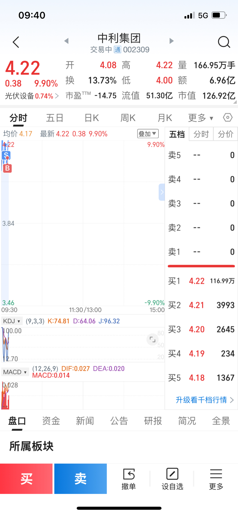 $中利集团(SZ002309)$ 做个小T,可惜只买了半仓回去