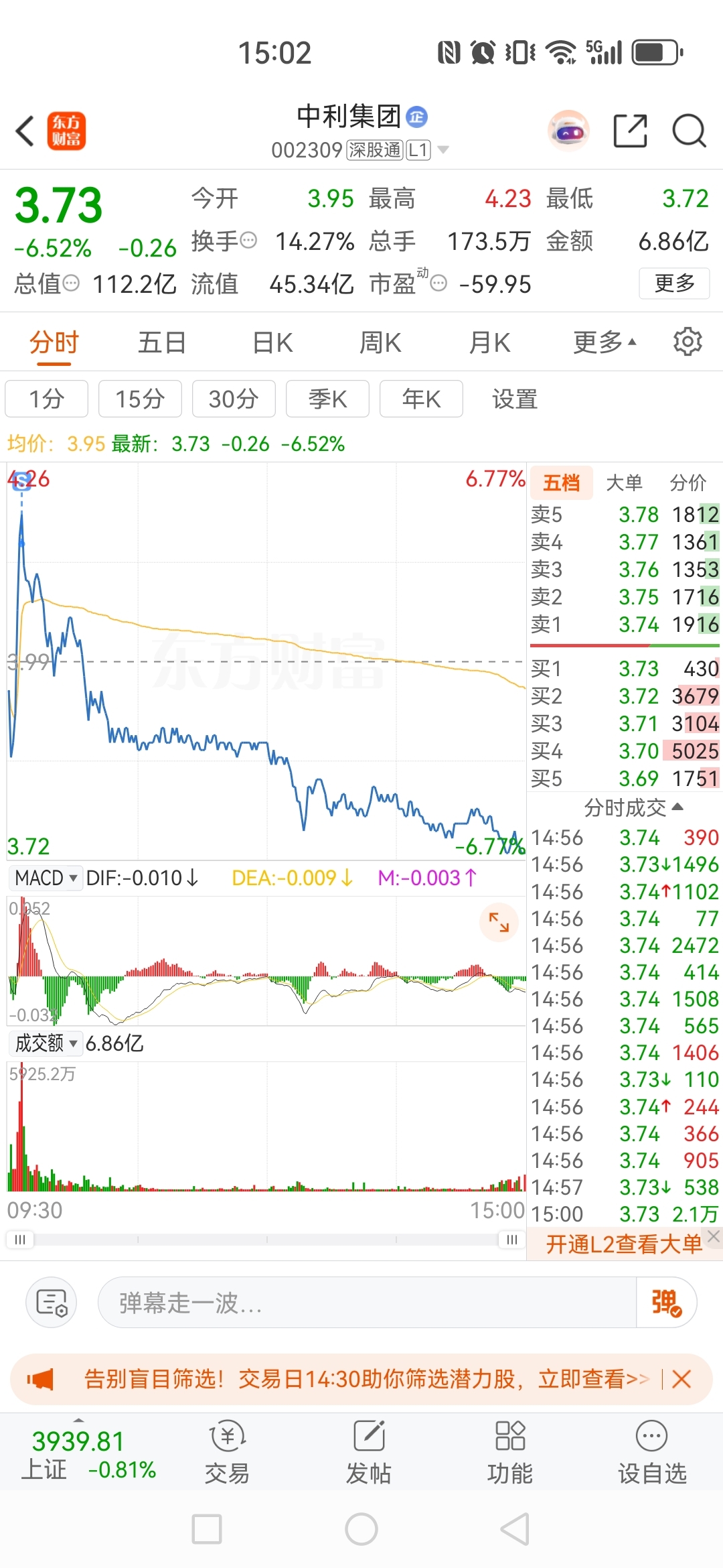$中利集团(SZ002309)$ 今天逃顶成功,卖出后跌了11个点,怕了这市场。