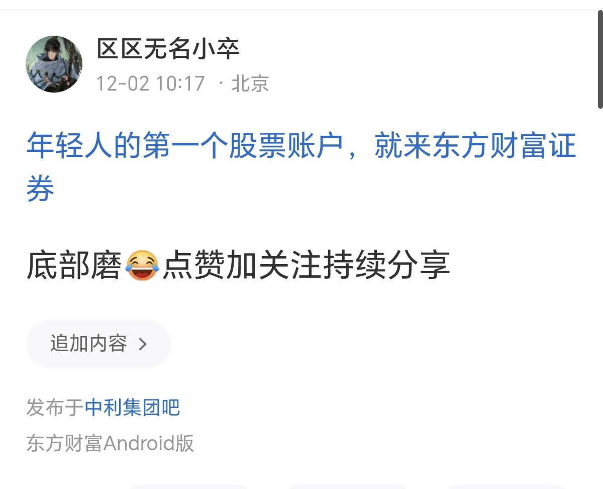 温馨提示: 1.根据《证券法》规定,禁止编造、传播虚假信息或者误导性信息,扰乱证券市场;2.用户在本社区发表的所有资料、言论等仅代表个人观点,与本网站立场无关,不对您构成任何投资建议。用户应基于自己的独立判断,自行决定证券投资并承担相应风险。《东方财富社区管理规定》