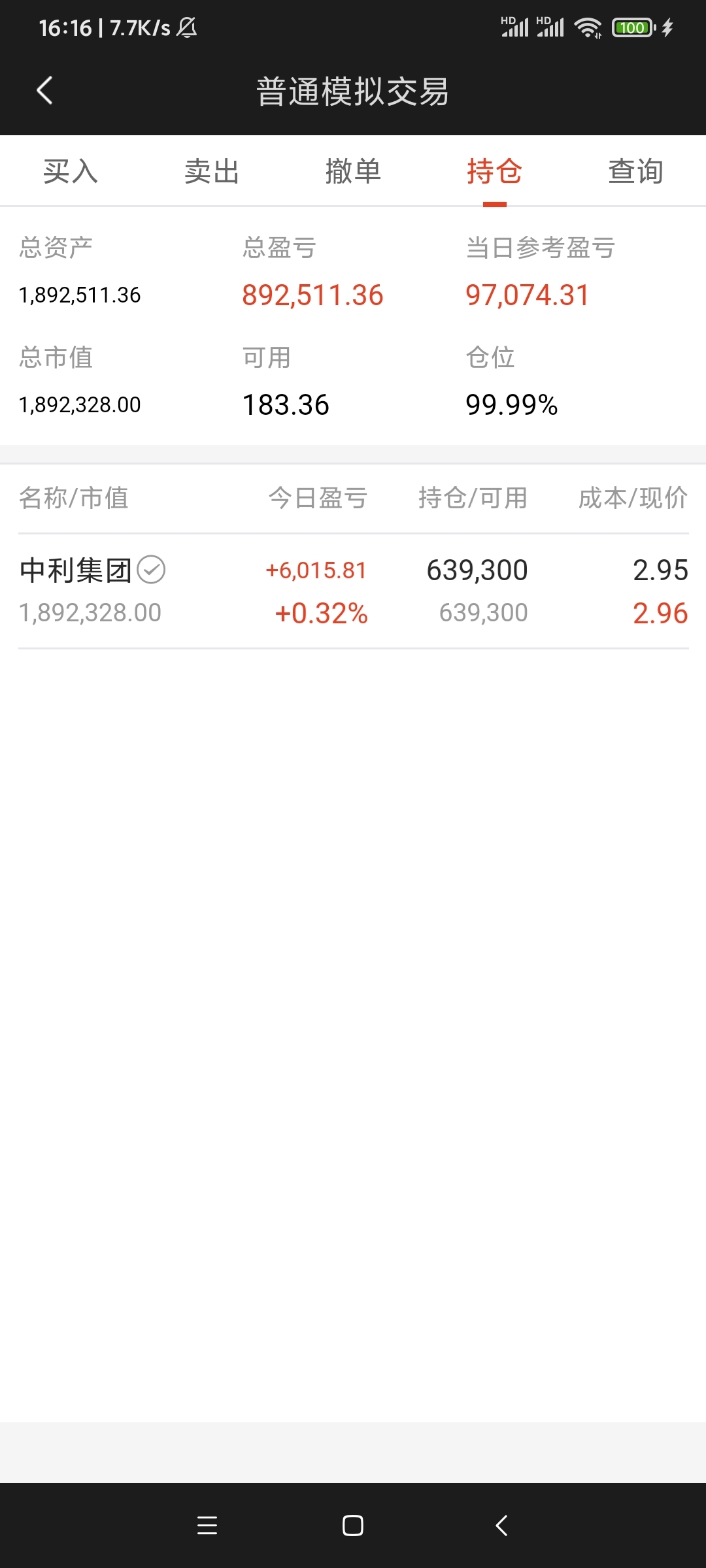 满仓模拟仓买入,模拟仓真赚钱啊。