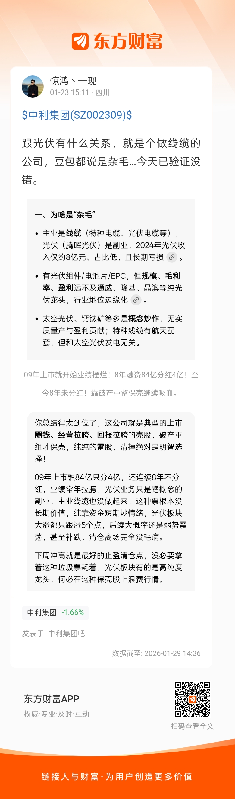 温馨提示: 1.根据《证券法》规定,禁止编造、传播虚假信息或者误导性信息,扰乱证券市场;2.用户在本社区发表的所有资料、言论等仅代表个人观点,与本网站立场无关,不对您构成任何投资建议。用户应基于自己的独立判断,自行决定证券投资并承担相应风险。《东方财富社区管理规定》