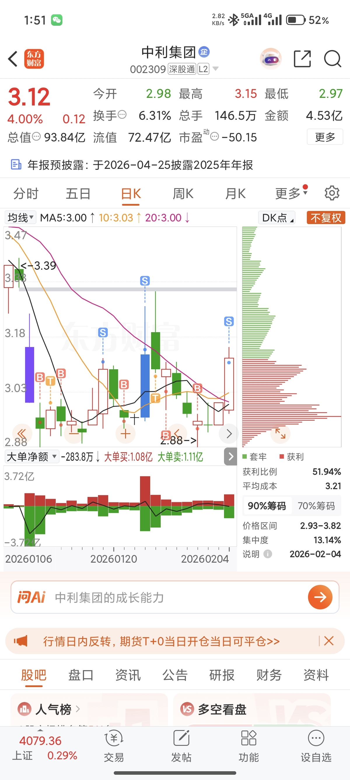 感谢中利,这一个月以来的大力支持。过年了,钱我有用。把机会留给没有吃肉的兄弟。我