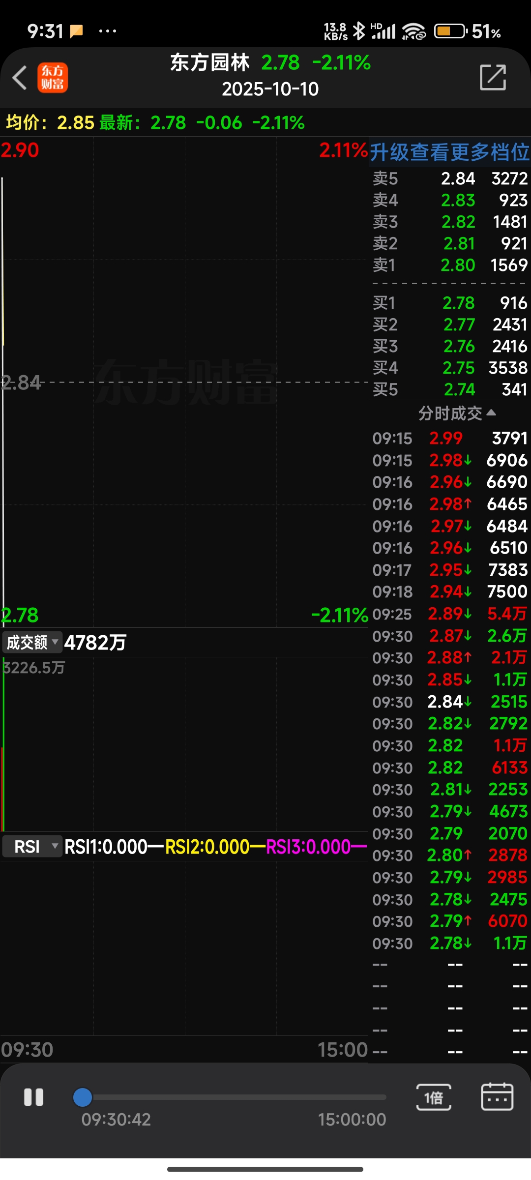 东方园林每次涨停第2天。高开瞬间回落,就是这个尿性。