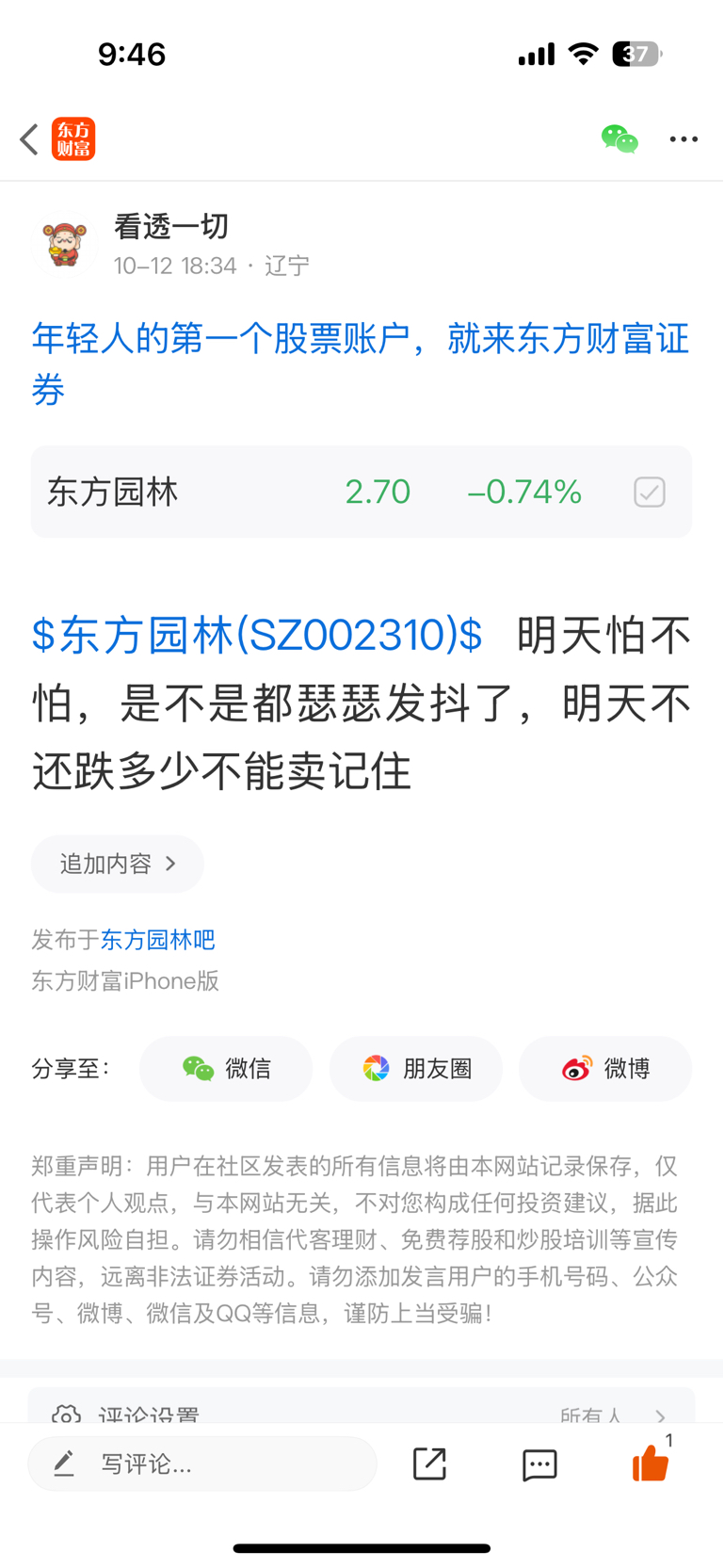 温馨提示: 1.根据《证券法》规定,禁止编造、传播虚假信息或者误导性信息,扰乱证券市场;2.用户在本社区发表的所有资料、言论等仅代表个人观点,与本网站立场无关,不对您构成任何投资建议。用户应基于自己的独立判断,自行决定证券投资并承担相应风险。《东方财富社区管理规定》