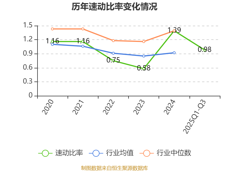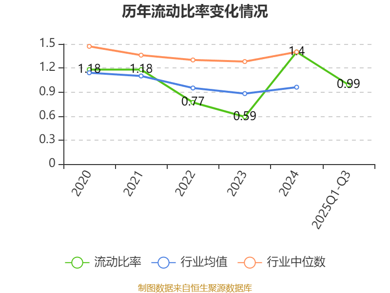 2025年前三季度,公司流动比率为0.99,速动比率为0.98。