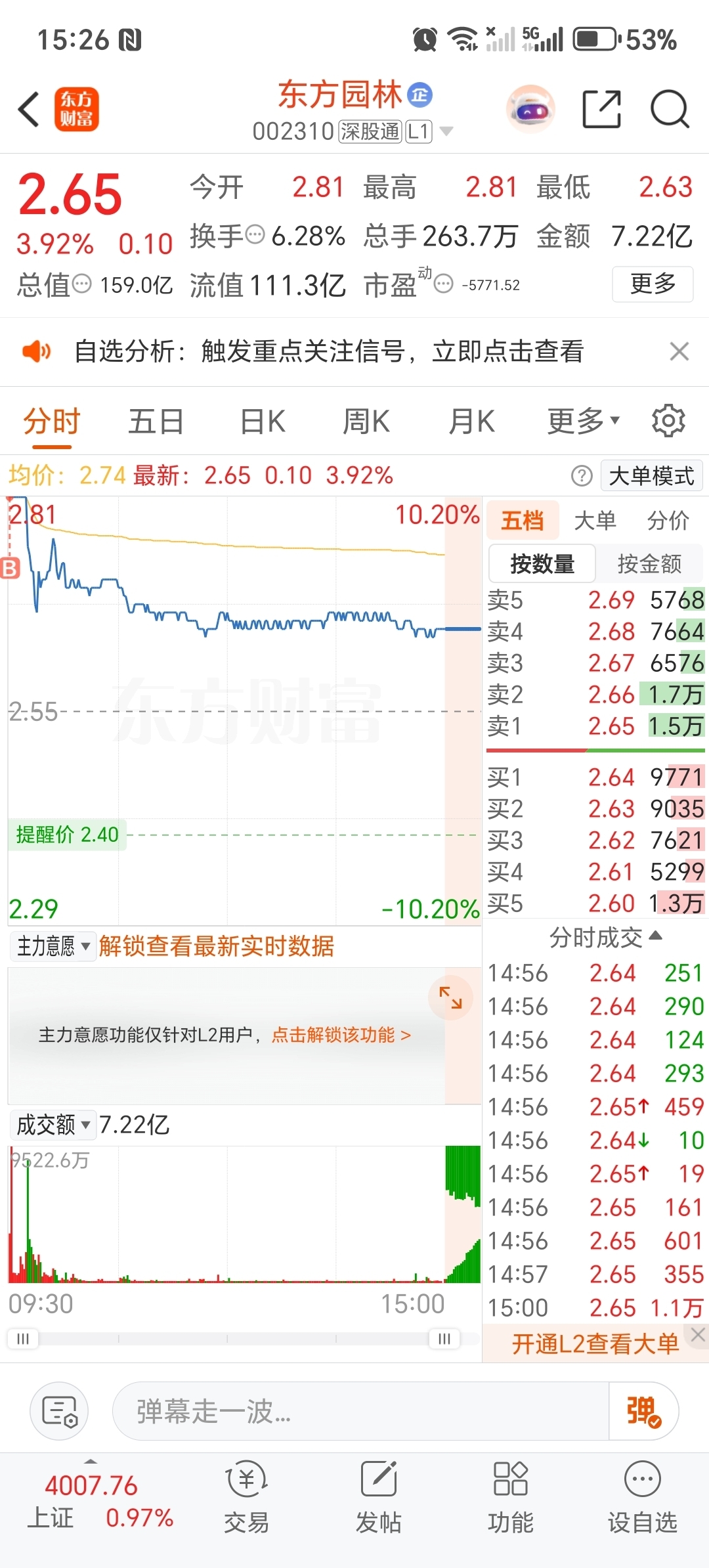 $东方园林(SZ002310)$ 手痒的好处就是精准的买在最高点