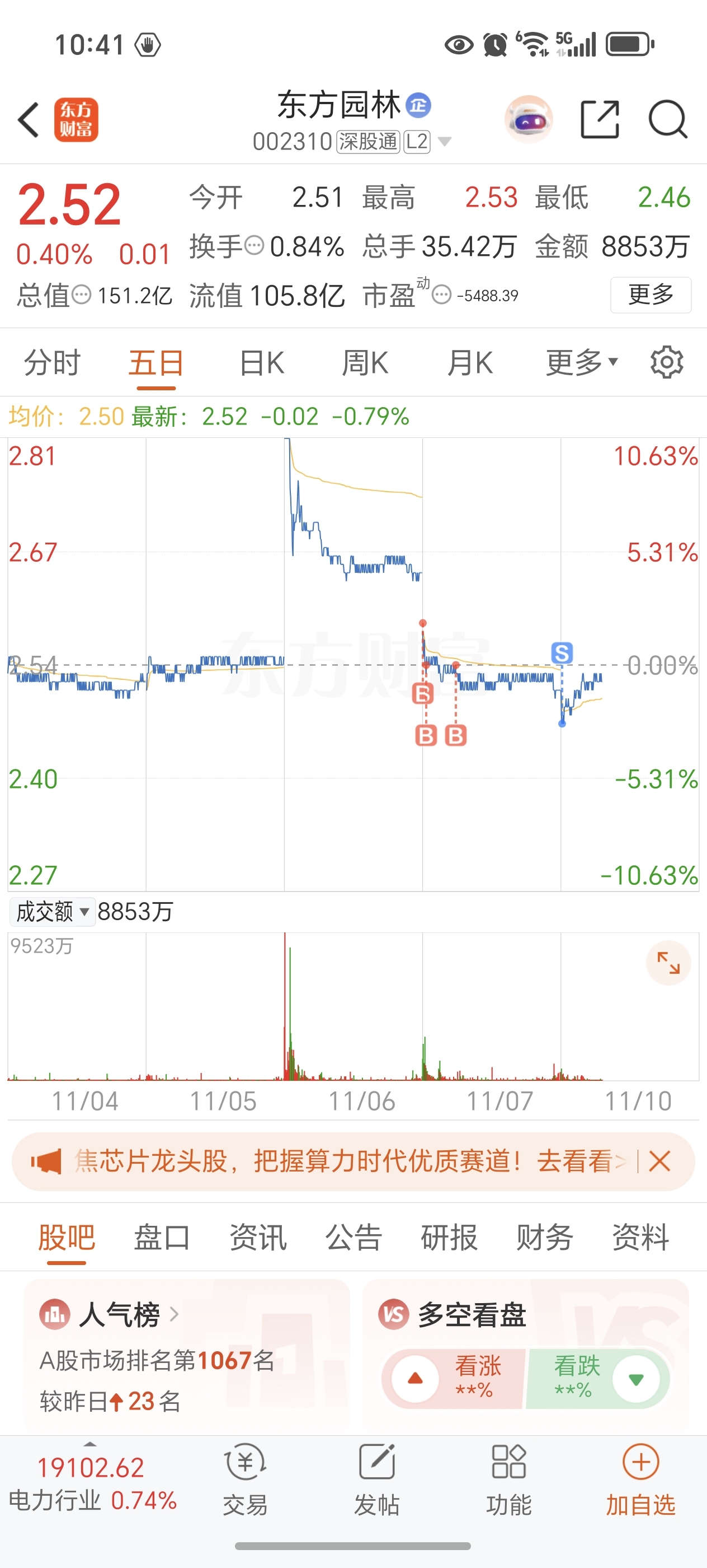 $东方园林(SZ002310)$ 割在最低点