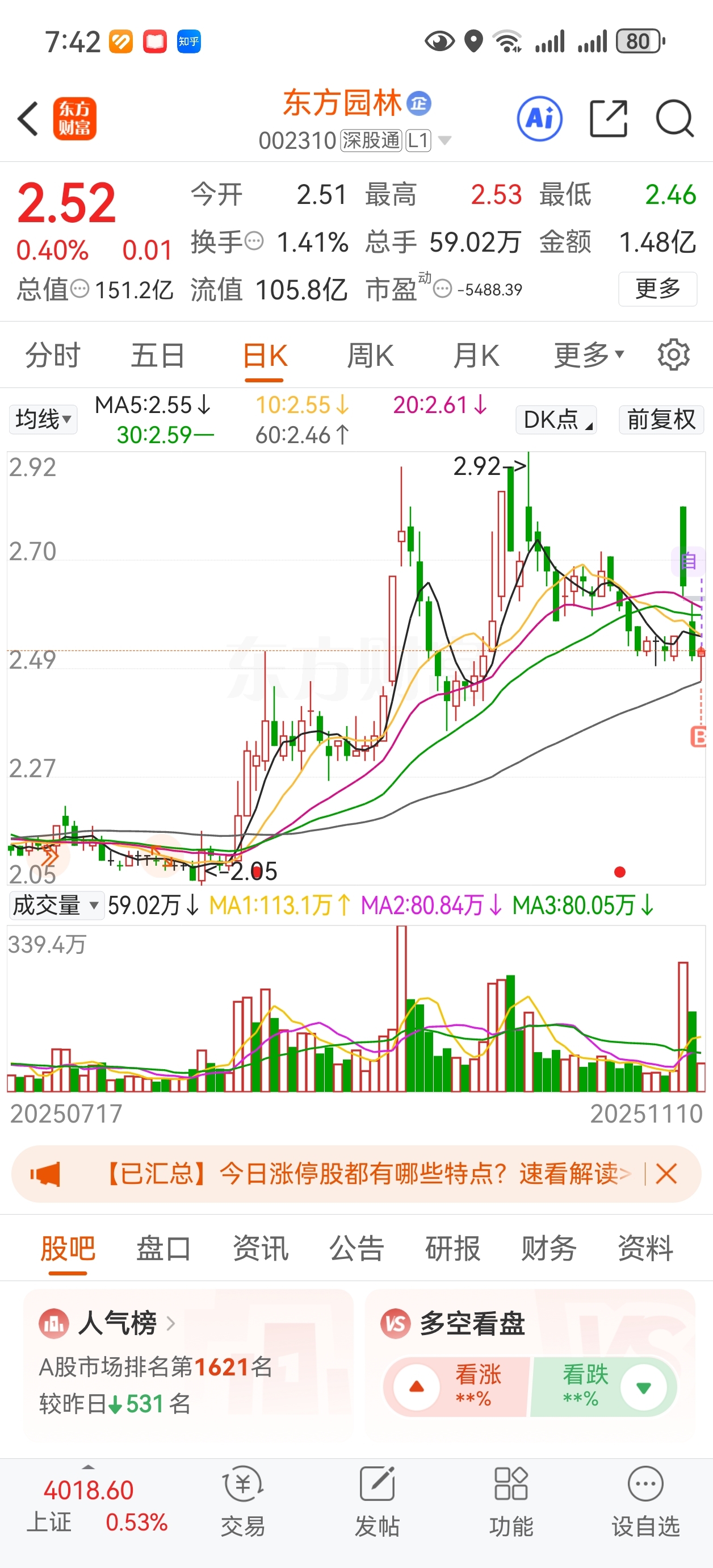$东方园林(SZ002310)$ 尾盘买进了300手,明天看好。