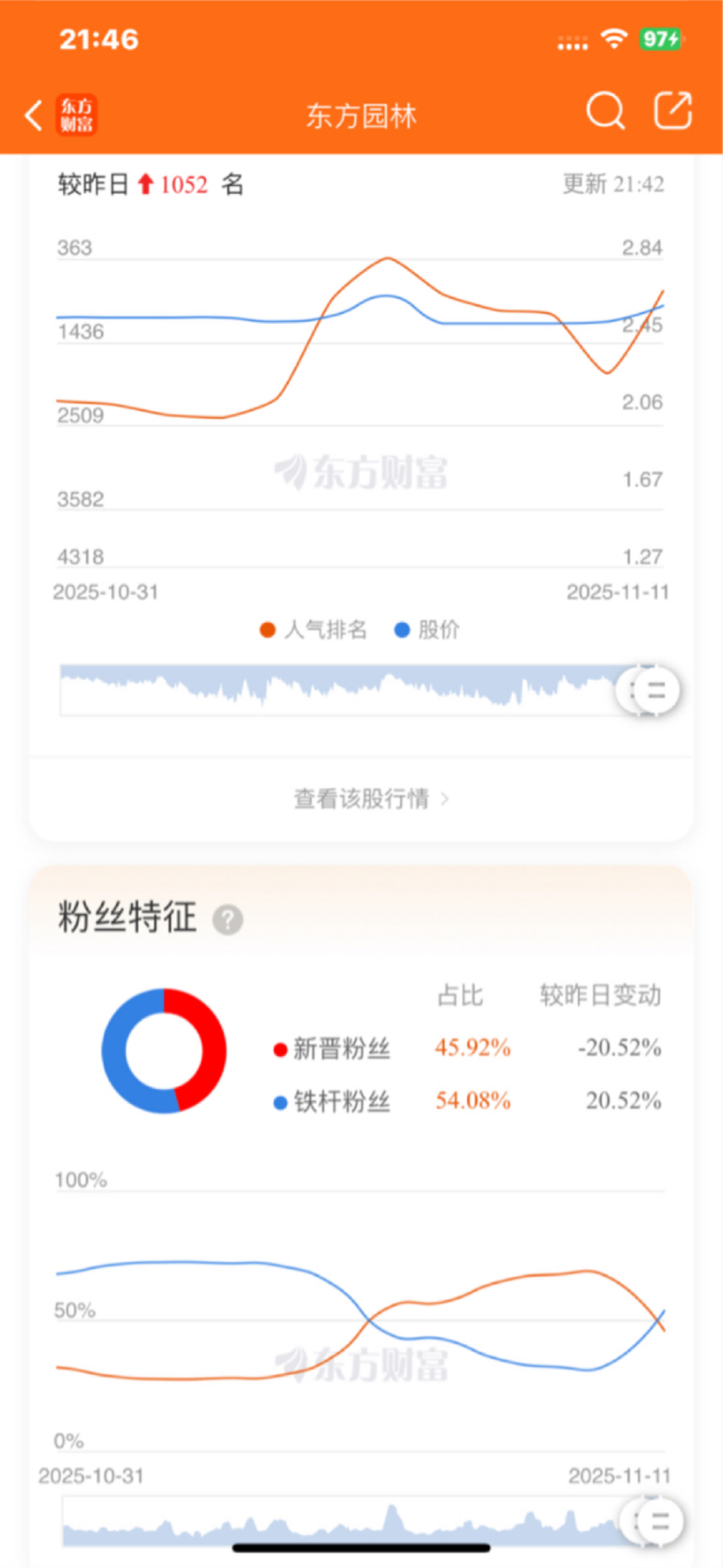 $东方园林(SZ002310)$ 人气排名反弹,新粉丝比例下降,老粉丝比例恢复,显示6日进来的新人有离场迹象?