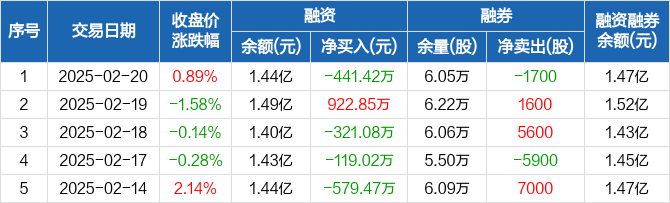 海大集团:融资净偿还441.42万元,融资余额1.44亿元(02-20)
