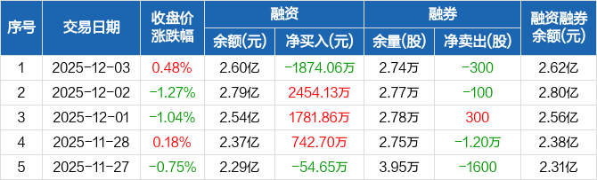 海大集团:融资净偿还1874.06万元,融资余额2.6亿元(12-03)