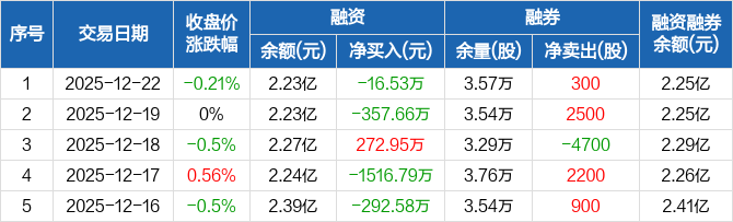 海大集团:融资净偿还16.53万元,融资余额2.23亿元(12-22)