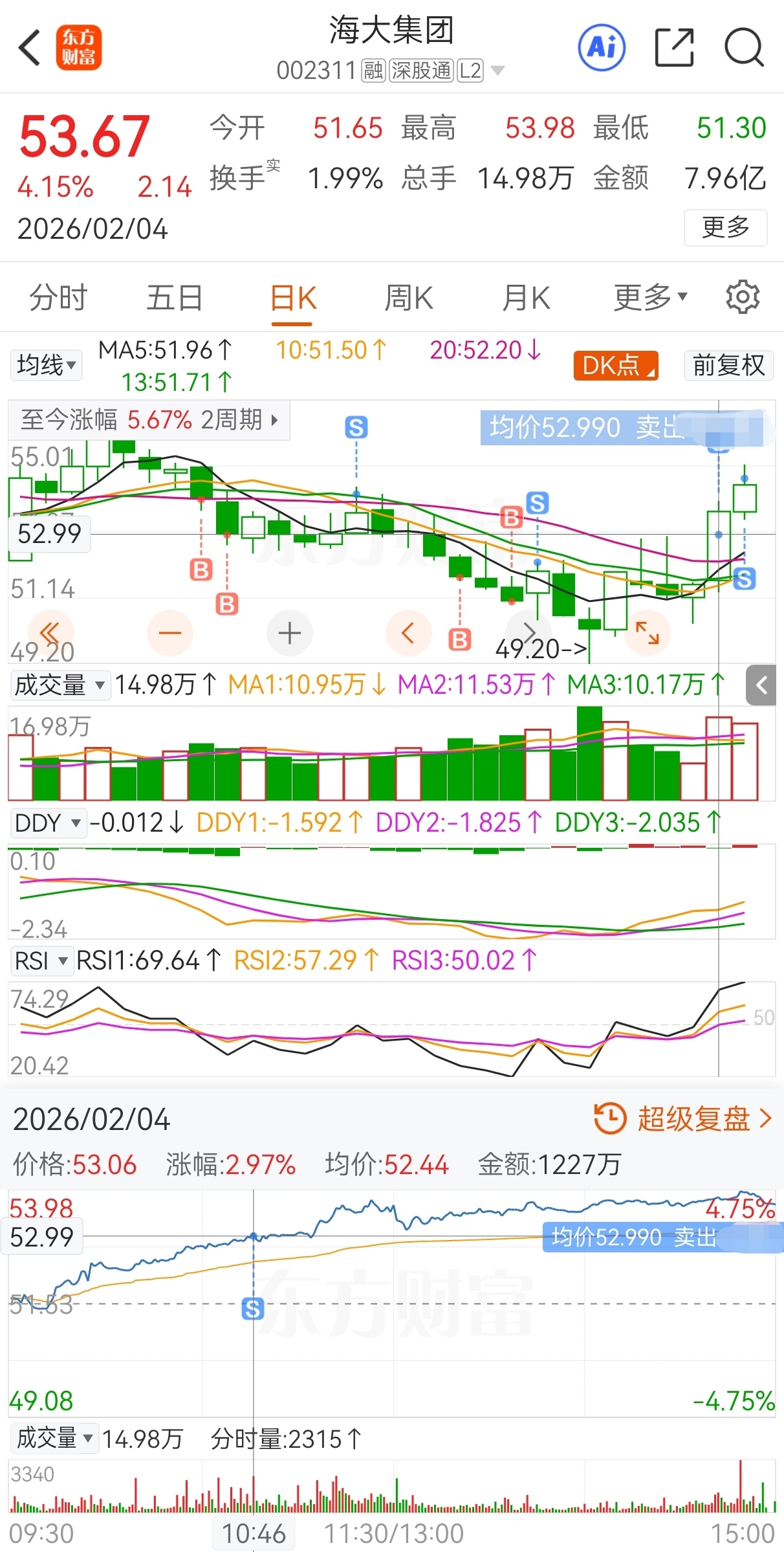 $海大集团(SZ002311)$ 原计划今买明卖,实际54.02买,52.99加仓,54.18减仓,51.74再加仓,51.03继续加仓,52.18再减仓,52.99继续减仓,54.64卖,实盘短线套利海大集团,成功收米走人!