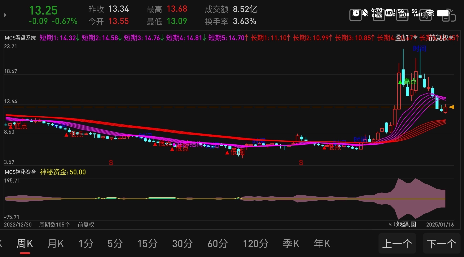 【mos跟踪大蟒蛇】静静等待回踩红色趋势带支撑