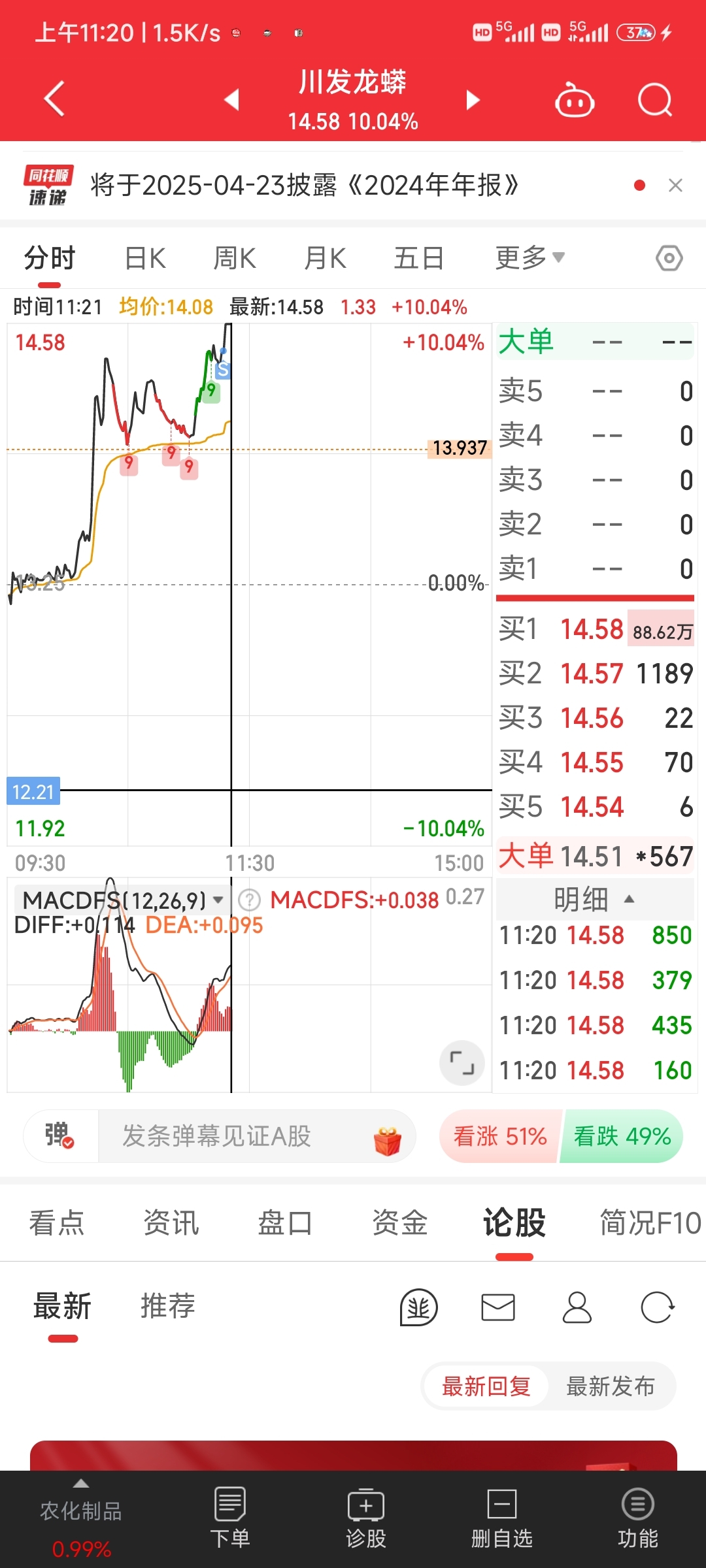 $川发龙蟒(SZ002312)$ 前后一秒钟,这样玩