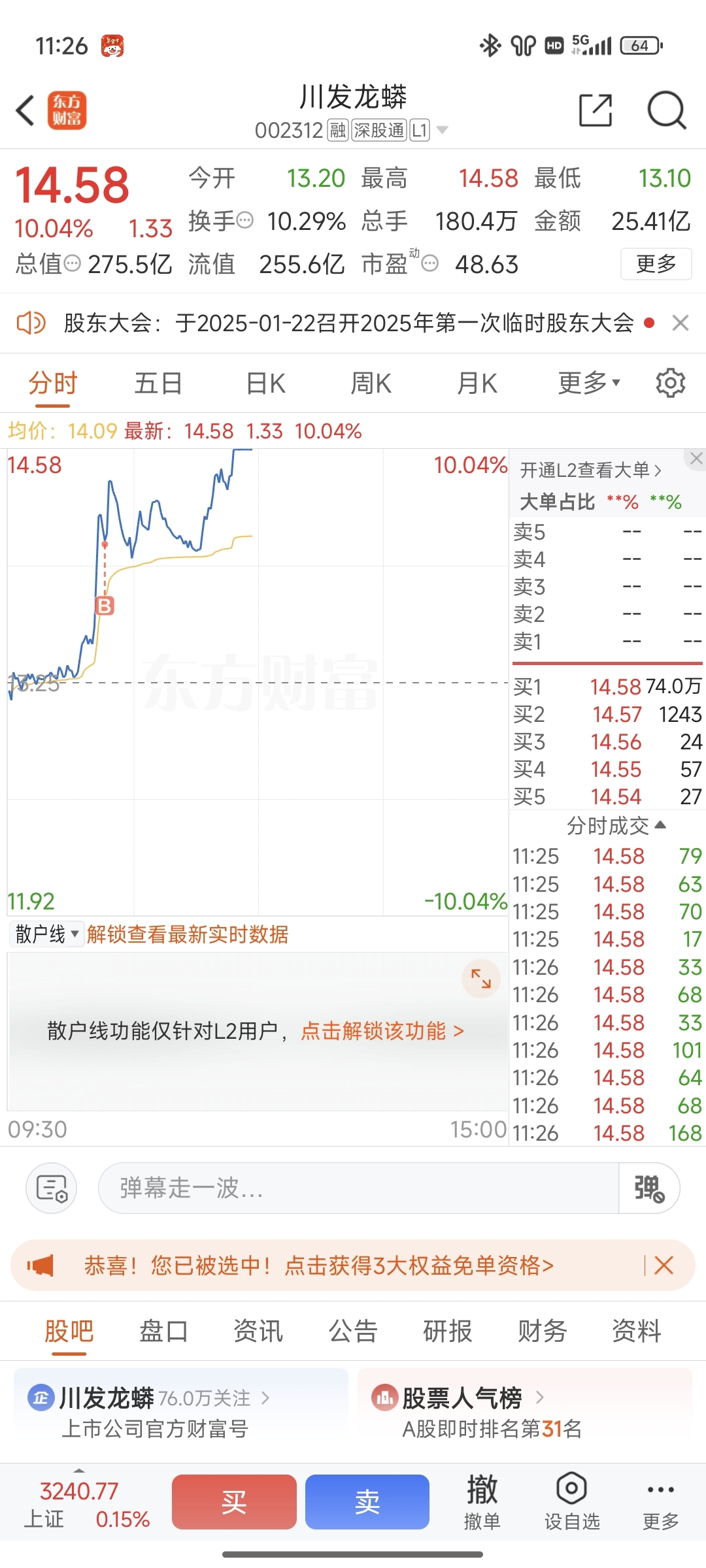 $川发龙蟒(SZ002312)$ 又是打板的一天