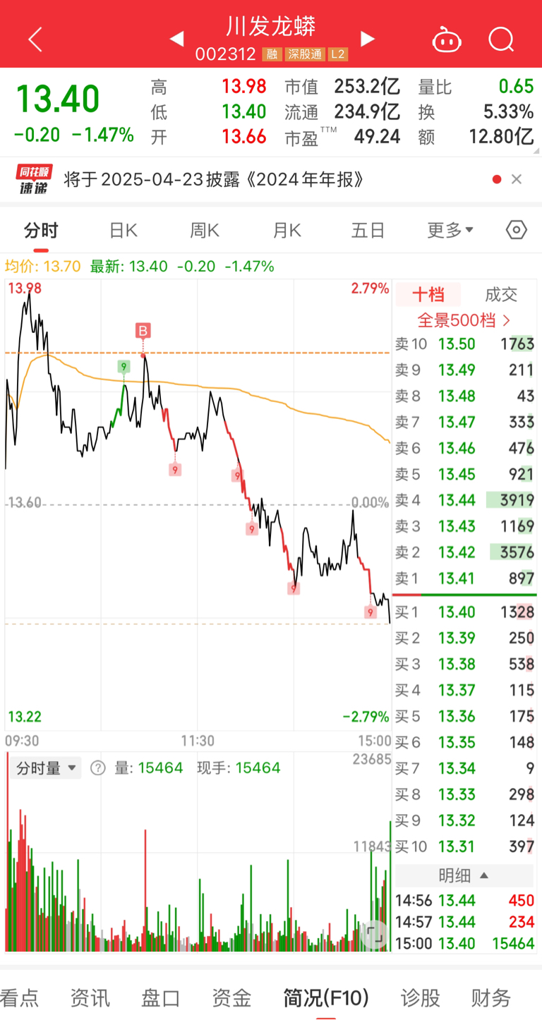 $川发龙蟒(SZ002312)$ 以为要拉涨停
