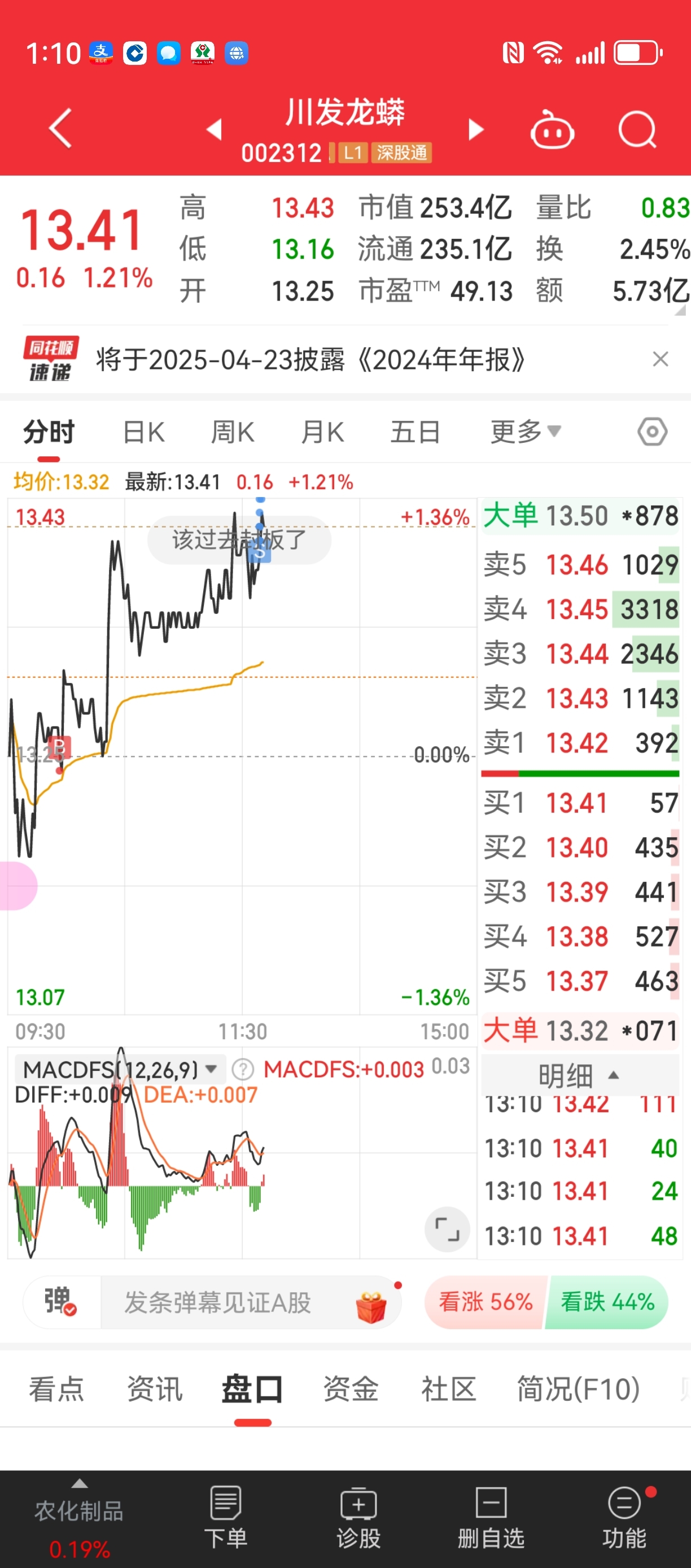 $川发龙蟒(SZ002312)$ 每日一T